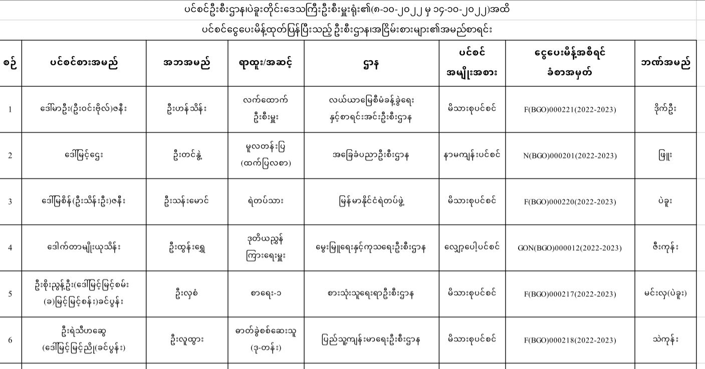 ပင်စင်ဦးစီးဌာန၊ ပဲခူးတိုင်းဒေသကြီးဦးစီးမှူးရုံး၏ ငွေပေးမိန့်ထုတ်ပြန်မှုစာရင်း (၈-၁၀-၂၀၂၂ မှ ၁၄-၁၀-၂၀၂၂) pension_editor Fri, 11/04/2022 - 16:08