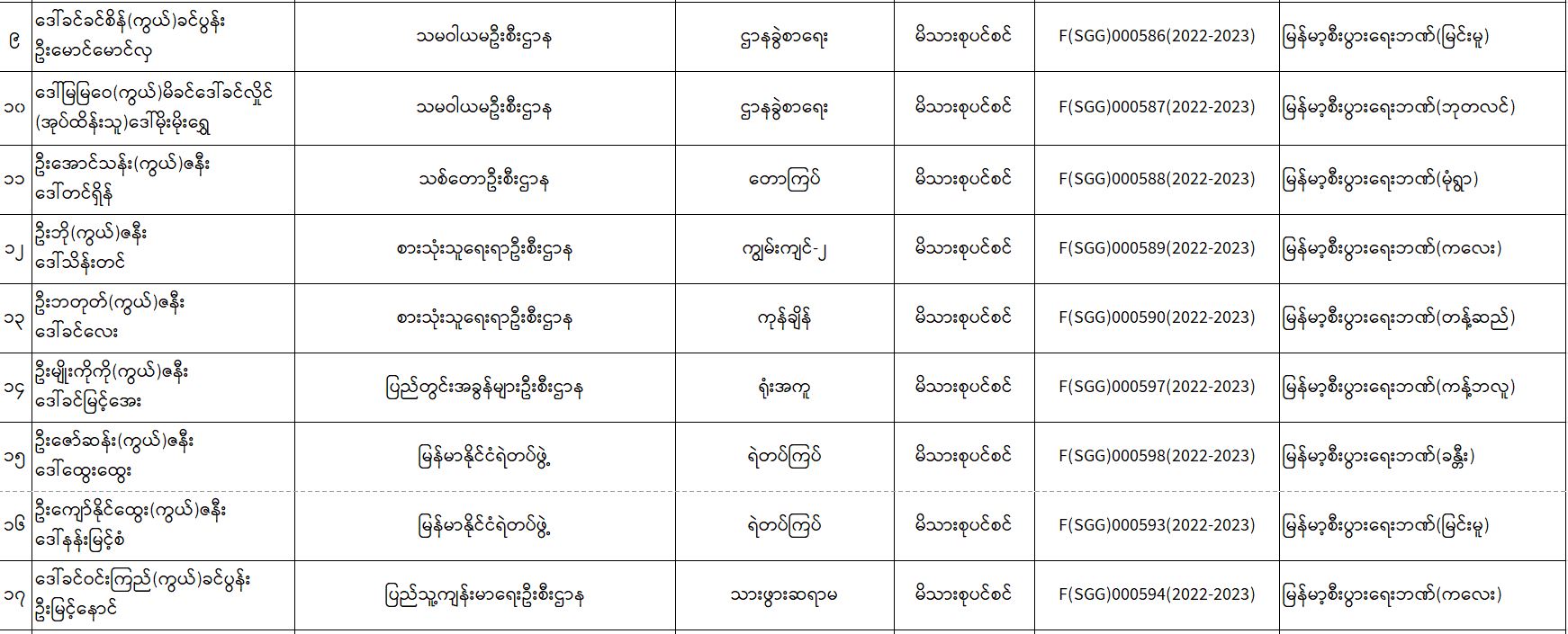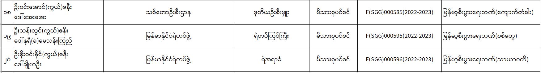 ပင်စင်ဦးစီးဌာန၊ စစ်ကိုင်းတိုင်းဒေသကြီးဦးစီးမှူးရုံး၏ ငွေပေးမိန့်ထုတ်ပြန်မှုစာရင်း (၁၀-၁၂-၂၀၂၂ မှ ၁၆-၁၂-၂၀၂၂) pension_editor Tue, 12/20/2022 - 12:08