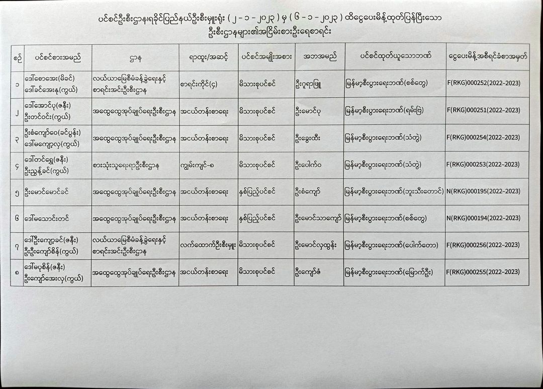 ပင်စင်ဦးစီးဌာန၊ရခိုင်ပြည်နယ်၏ငွေပေးမိန့်ထုတ်ပြန်မှုစာရင်း(၂-၁-၂၀၂၃ မှ ၆-၁-၂၀၂၃) pension_editor Mon, 01/09/2023 - 10:19
