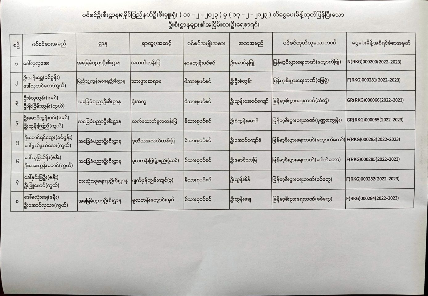 ပင်စင်ဦးစီးဌာန၊ရခိုင်ပြည်နယ်၏ငွေပေးမိန့်ထုတ်ပြန်မှုစာရင်း(၁၁-၂-၂၀၂၃ မှ ၁၇-၂-၂၀၂၃) pension_editor Thu, 02/16/2023 - 13:23