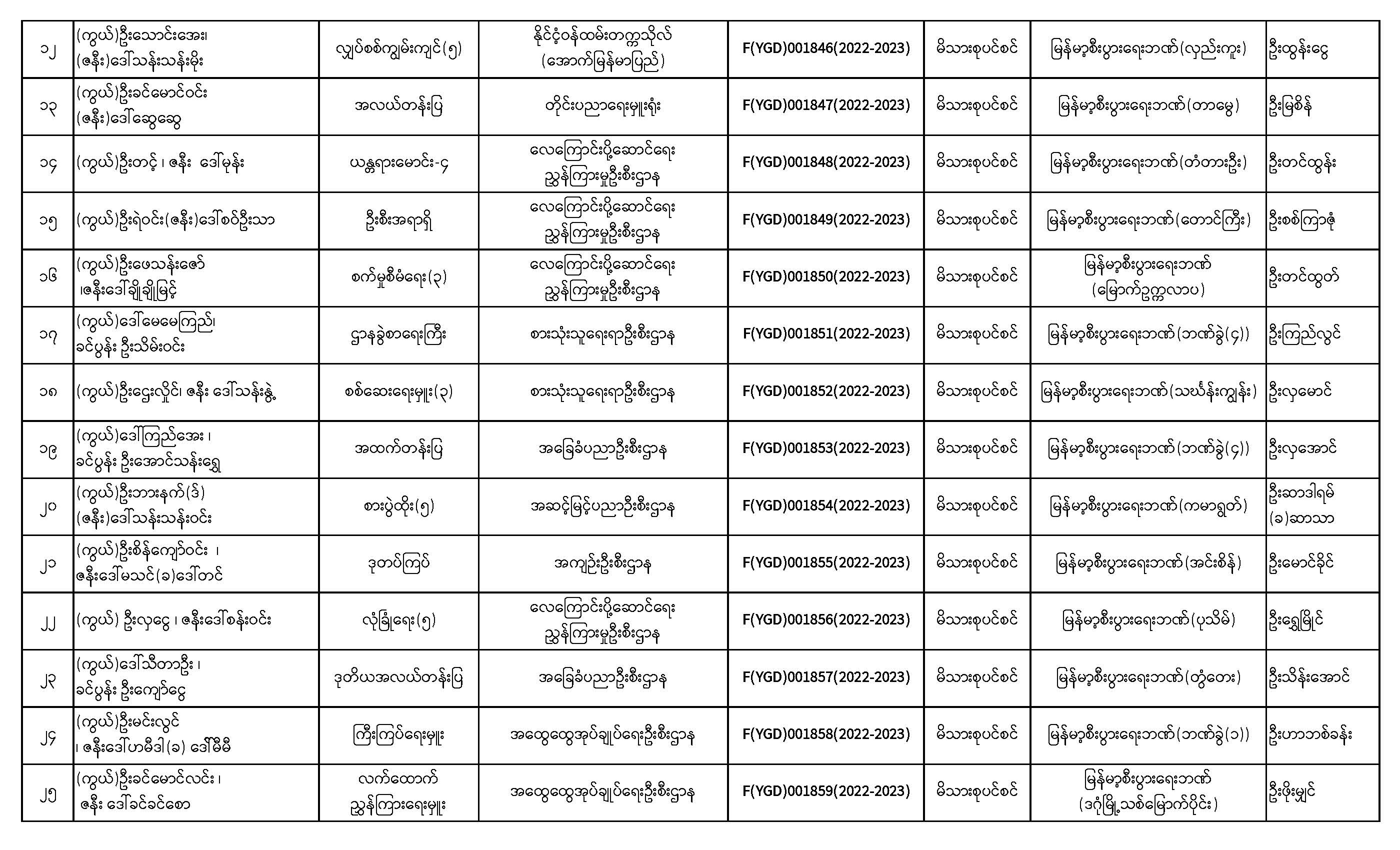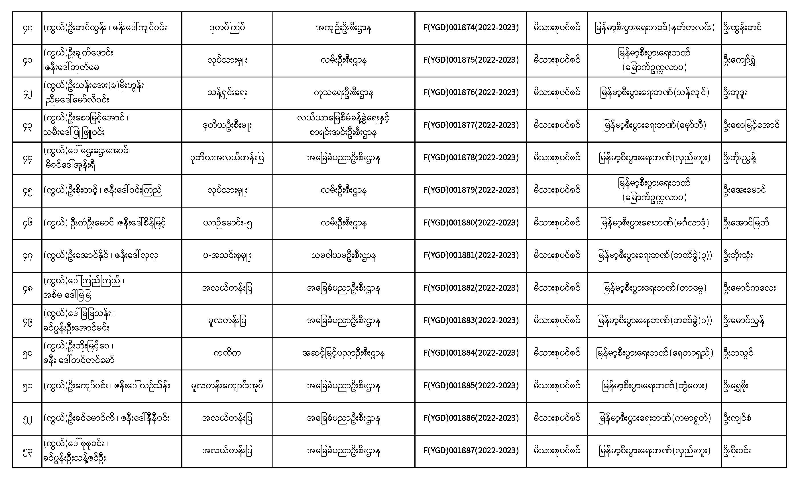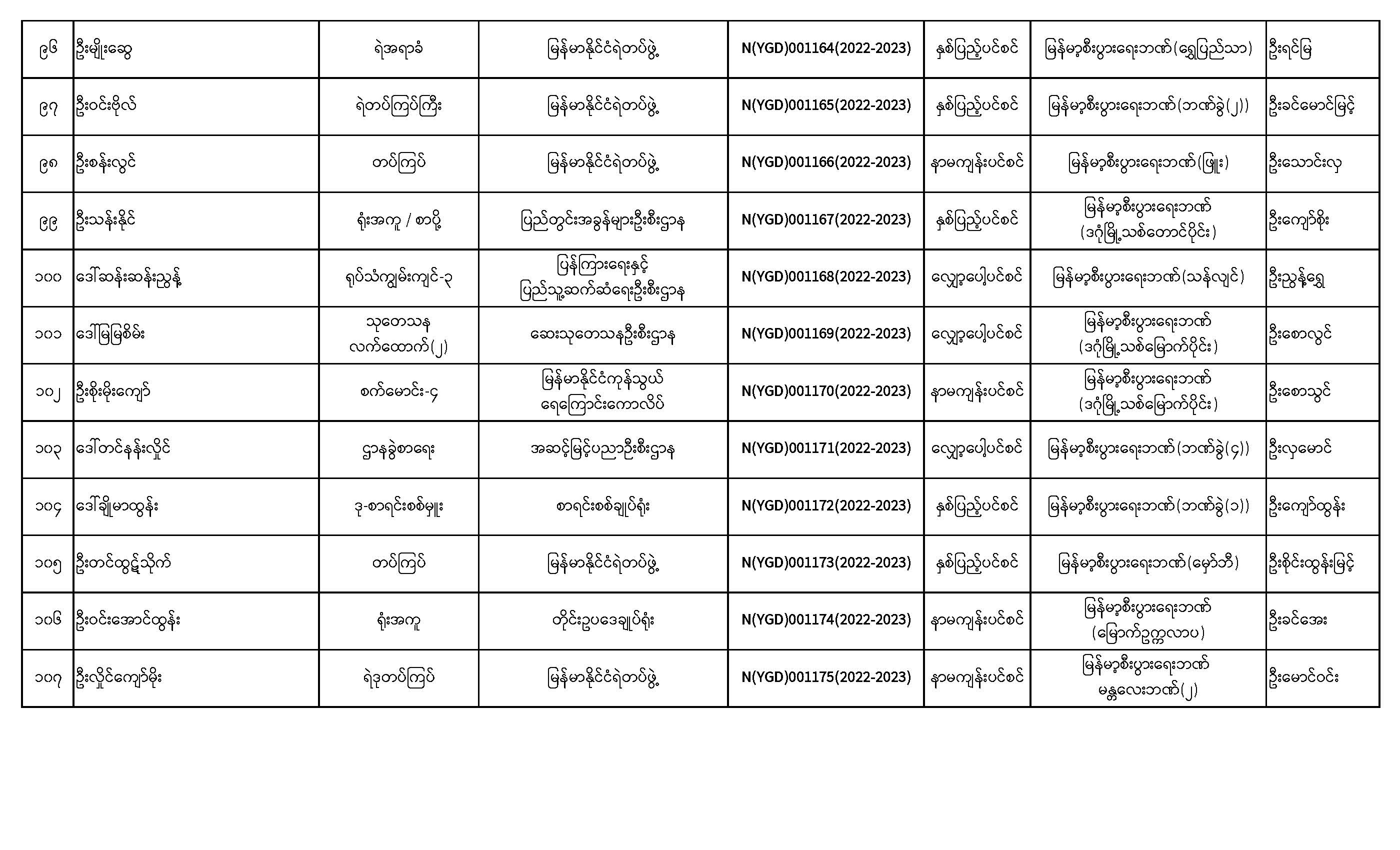 ပင်စင်ဦးစီးဌာန၊ ရန်ကုန်တိုင်းဒေသကြီးဦးစီးမှူးရုံး၏ ငွေပေးမိန့်ထုတ်ပြန်မှုစာရင်း (၁-၂-၂၀၂၃ မှ ၁၆-၂-၂၀၂၃)