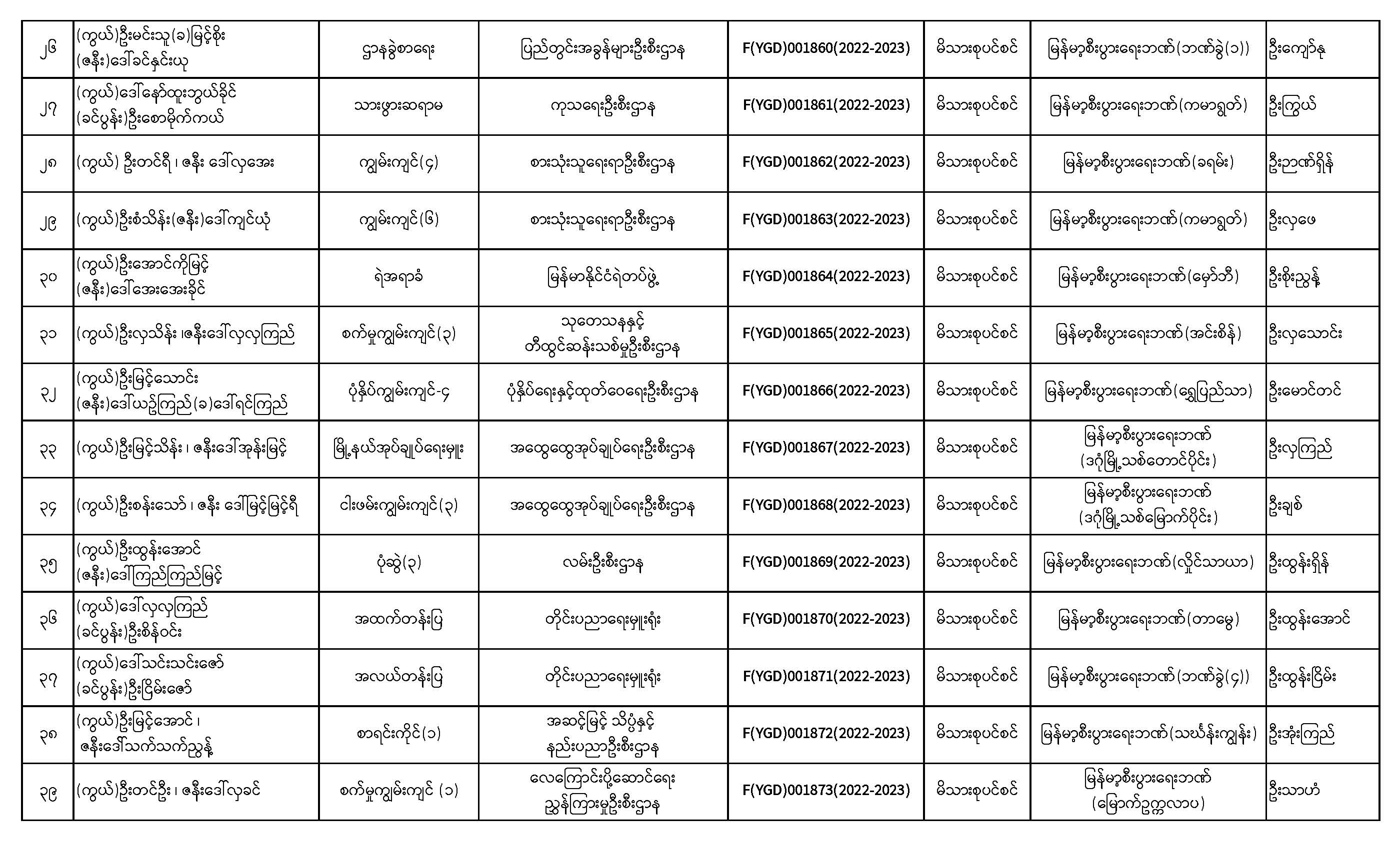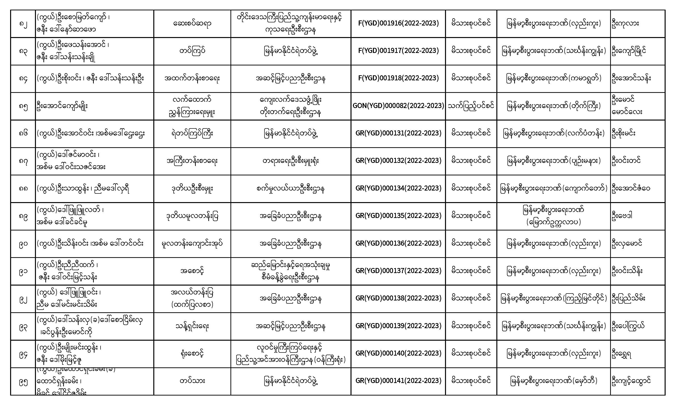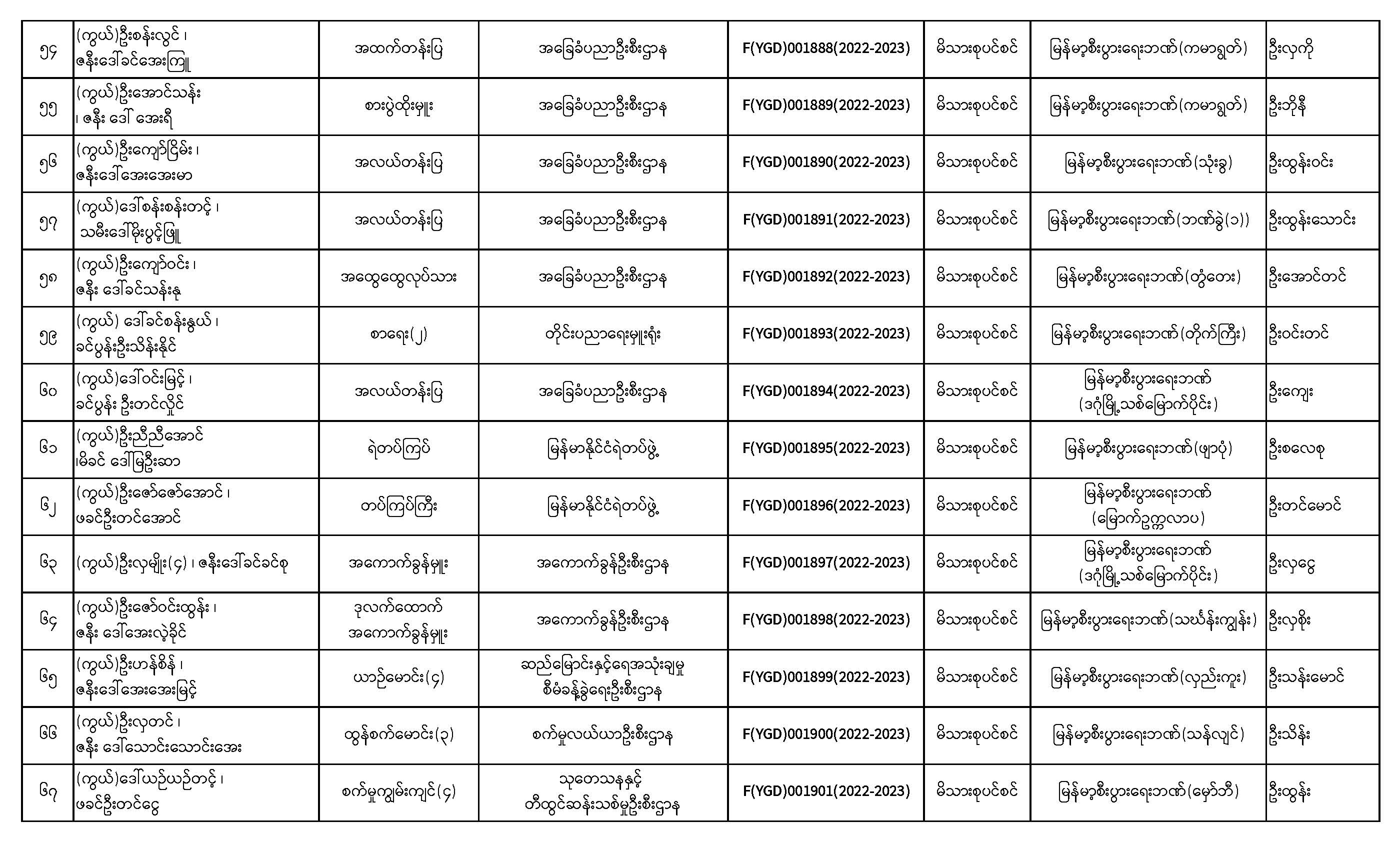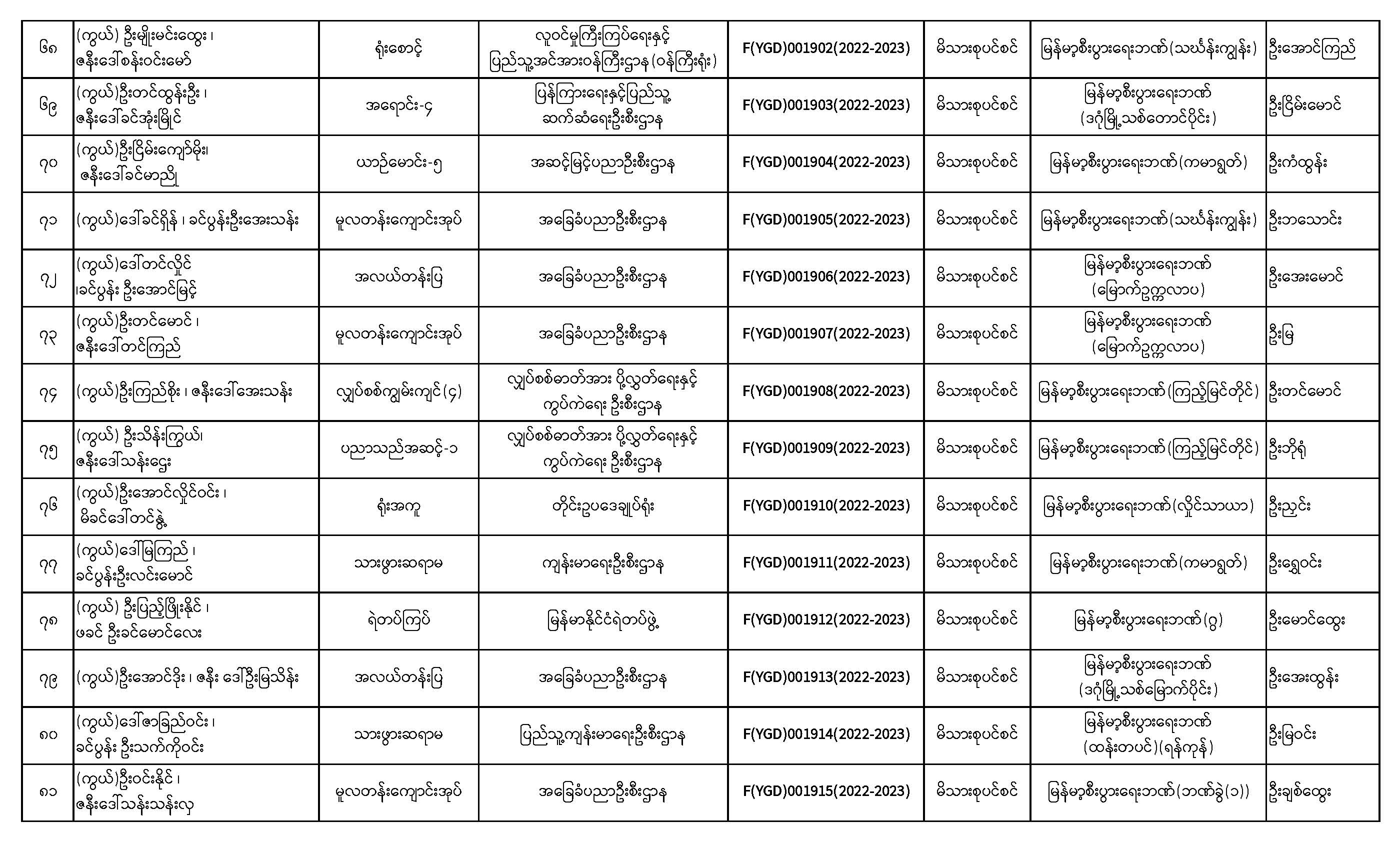 ပင်စင်ဦးစီးဌာန၊ ရန်ကုန်တိုင်းဒေသကြီးဦးစီးမှူးရုံး၏ ငွေပေးမိန့်ထုတ်ပြန်မှုစာရင်း (၁-၂-၂၀၂၃ မှ ၁၆-၂-၂၀၂၃)