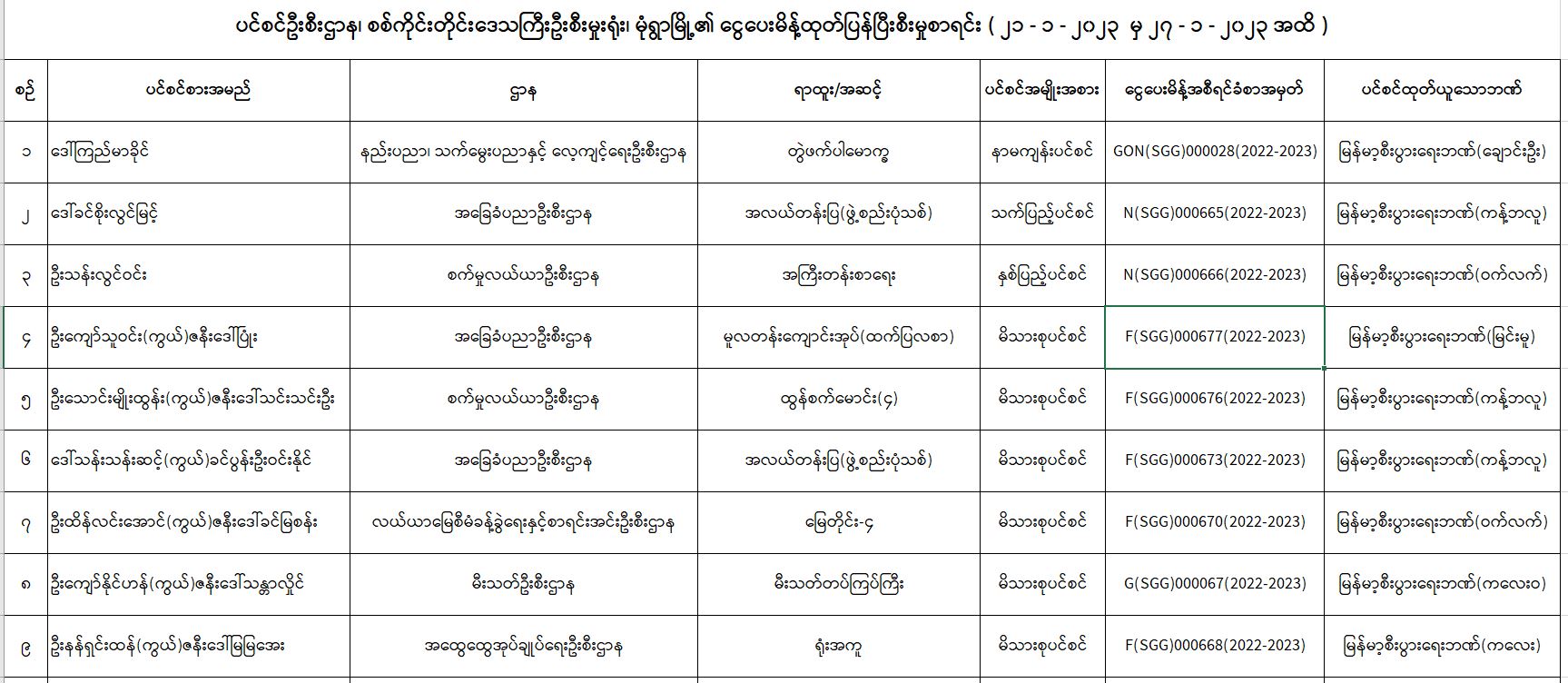 ပင်စင်ဦးစီးဌာန၊ စစ်ကိုင်းတိုင်းဒေသကြီးဦးစီးမှူးရုံး၏ ငွေပေးမိန့်ထုတ်ပြန်မှုစာရင်း (၂၁-၁-၂၀၂၃ မှ ၂၇-၁-၂၀၂၃) pension_editor Wed, 03/08/2023 - 10:27