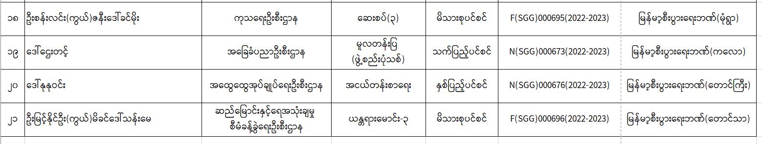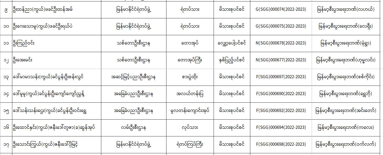 ပင်စင်ဦးစီးဌာန၊ စစ်ကိုင်းတိုင်းဒေသကြီးဦးစီးမှူးရုံး၏ ငွေပေးမိန့်ထုတ်ပြန်မှုစာရင်း (၄-၂-၂၀၂၃ မှ ၁၀-၂-၂၀၂၃)