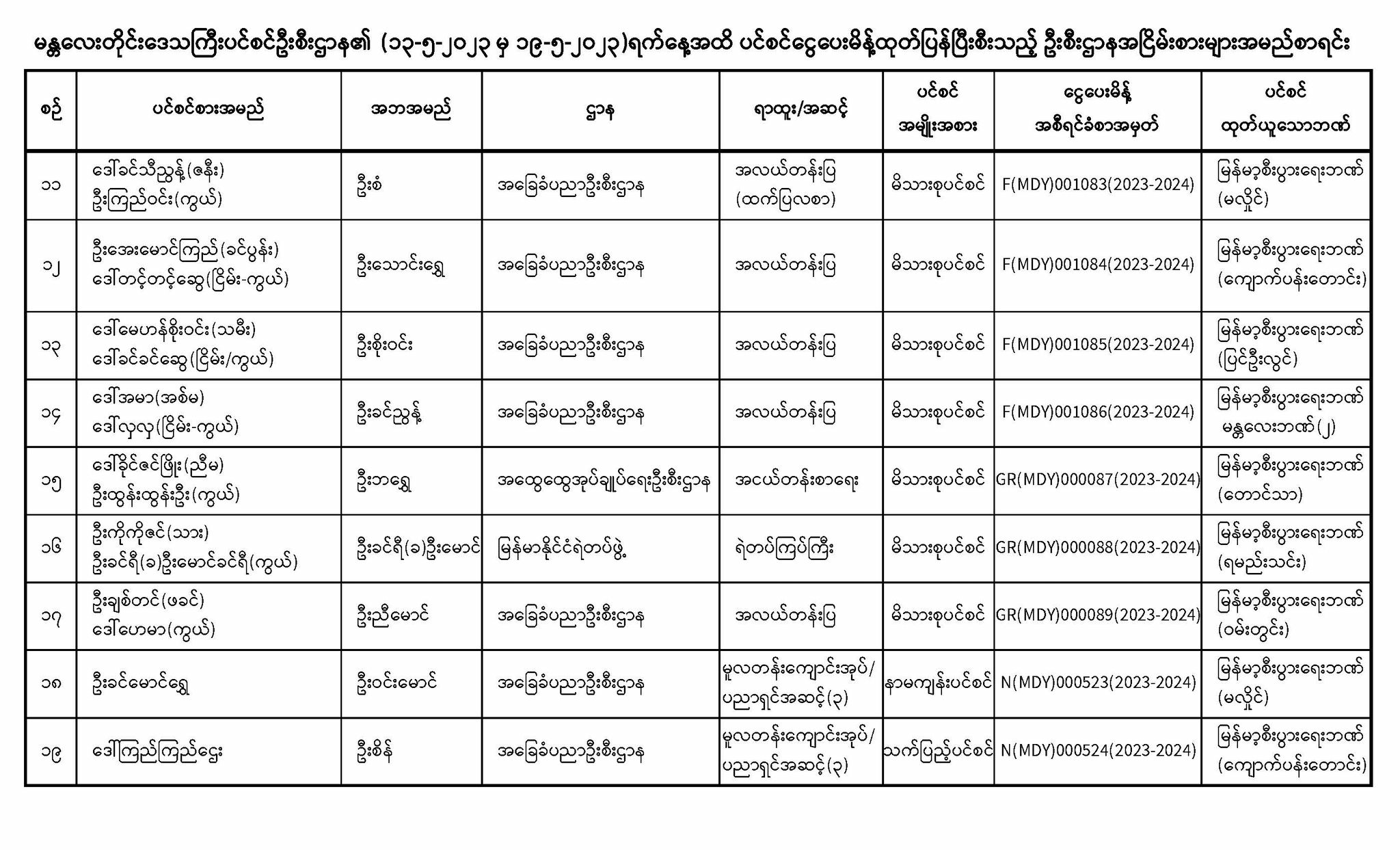 ပင်စင်ဦးစီးဌာန၊ မန္တလေးတိုင်းဒေသကြီးဦးစီးမှူးရုံး၏ ငွေပေးမိန့်ထုတ်ပြန်မှုစာရင်း (၁၃-၅-၂၀၂၃ မှ ၁၉-၅-၂၀၂၃) pension_editor Wed, 05/24/2023 - 12:11