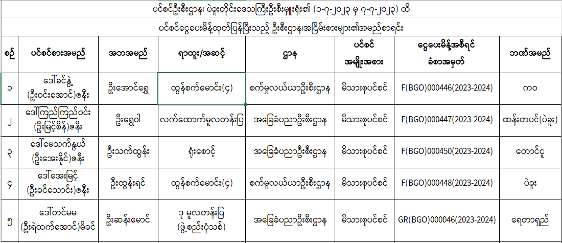 ပင်စင်ဦးစီးဌာန၊ ပဲခူးတိုင်းဒေသကြီးဦးစီးမှူးရုံး၏ ငွေပေးမိန့်ထုတ်ပြန်မှုစာရင်း (၁-၇-၂၀၂၃ မှ ၇-၇-၂၀၂၃) pension_editor Thu, 07/06/2023 - 15:45