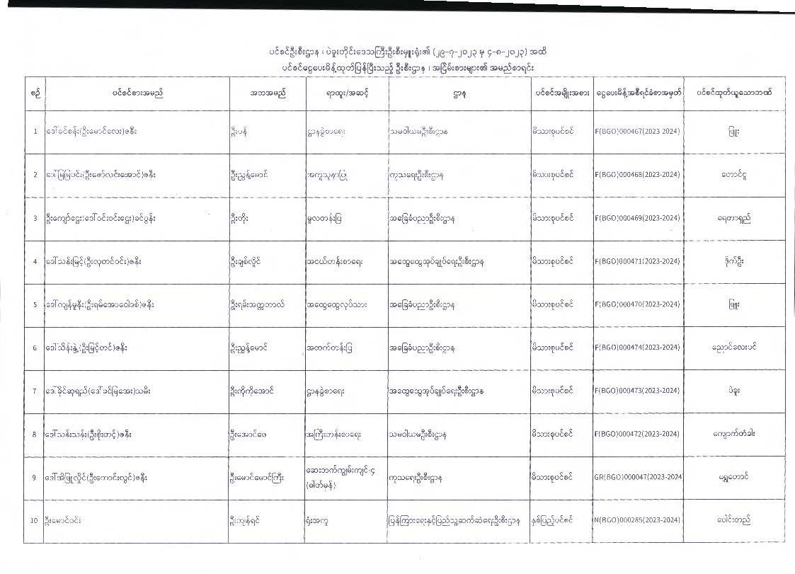 ပင်စင်ဦးစီးဌာန၊ ပဲခူးတိုင်းဒေသကြီးဦးစီးမှူးရုံး၏ ငွေပေးမိန့်ထုတ်ပြန်မှုစာရင်း (၂၉-၇-၂၀၂၃ မှ ၄-၈-၂၀၂၃) pension_editor Fri, 08/04/2023 - 14:23