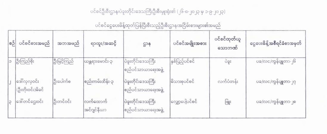 ပင်စင်ဦးစီးဌာန၊ ပဲခူးတိုင်းဒေသကြီးဦးစီးမှူးရုံး၏ ငွေပေးမိန့်ထုတ်ပြန်မှုစာရင်း (၂၆-၈-၂၀၂၃ မှ ၁-၉-၂၀၂၃) pension_editor Thu, 09/07/2023 - 12:11