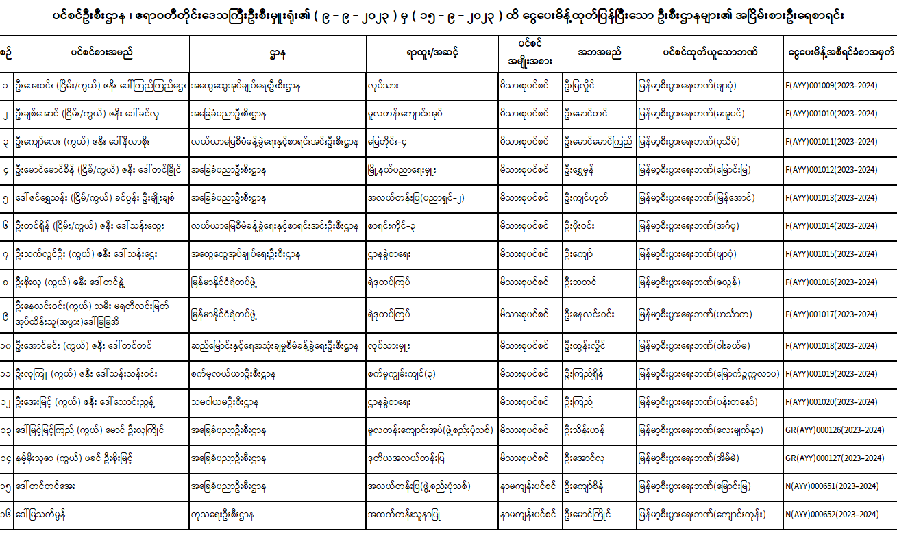 ပင်စင်ဦးစီးဌာန၊ ဧရာဝတီတိုင်းဒေသကြီးဦးစီးမှူးရုံး၏ ငွေပေးမိန့်ထုတ်ပြန်မှုစာရင်း (၉-၉-၂၀၂၃ မှ ၁၅-၉-၂၀၂၃) pension_editor Wed, 09/13/2023 - 12:54