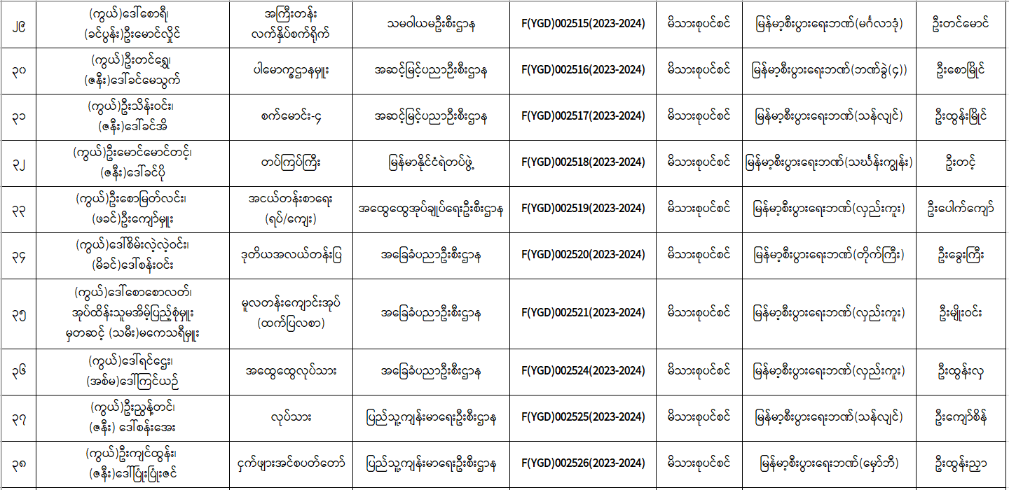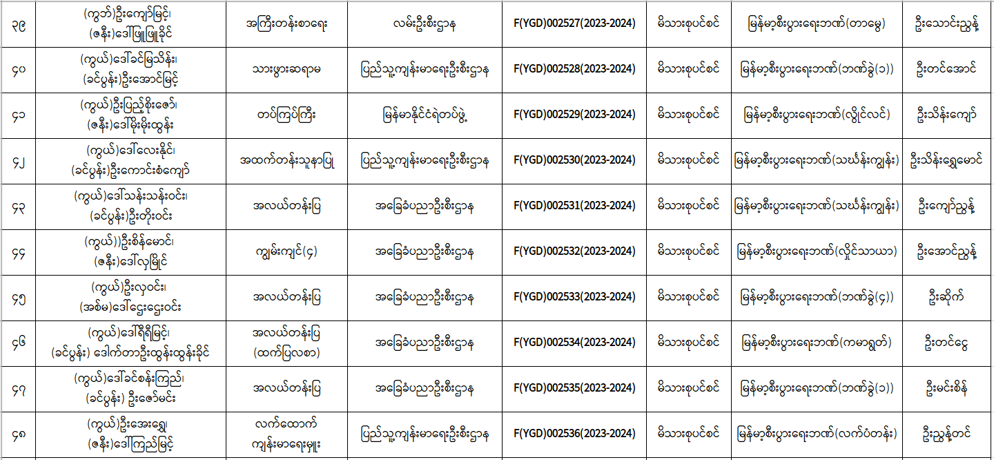ပင်စင်ဦးစီးဌာန၊ ရန်ကုန်တိုင်းဒေသကြီးဦးစီးမှူးရုံး၏ ငွေပေးမိန့်ထုတ်ပြန်မှုစာရင်း (၁-၉-၂၀၂၃ မှ ၁၇-၉-၂၀၂၃)