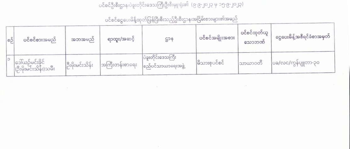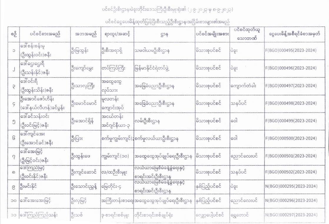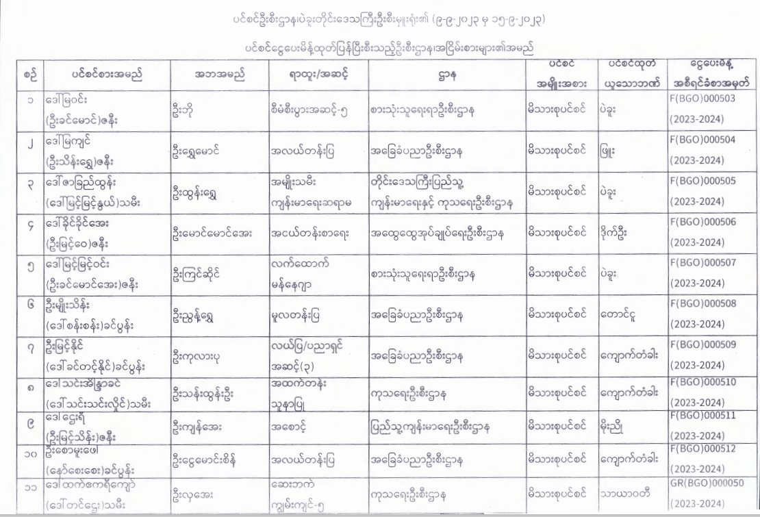 ပင်စင်ဦးစီးဌာန၊ ပဲခူးတိုင်းဒေသကြီးဦးစီးမှူးရုံး၏ ငွေပေးမိန့်ထုတ်ပြန်မှုစာရင်း (၂-၉-၂၀၂၃ မှ ၁၅-၉-၂၀၂၃) pension_editor Wed, 09/20/2023 - 10:48