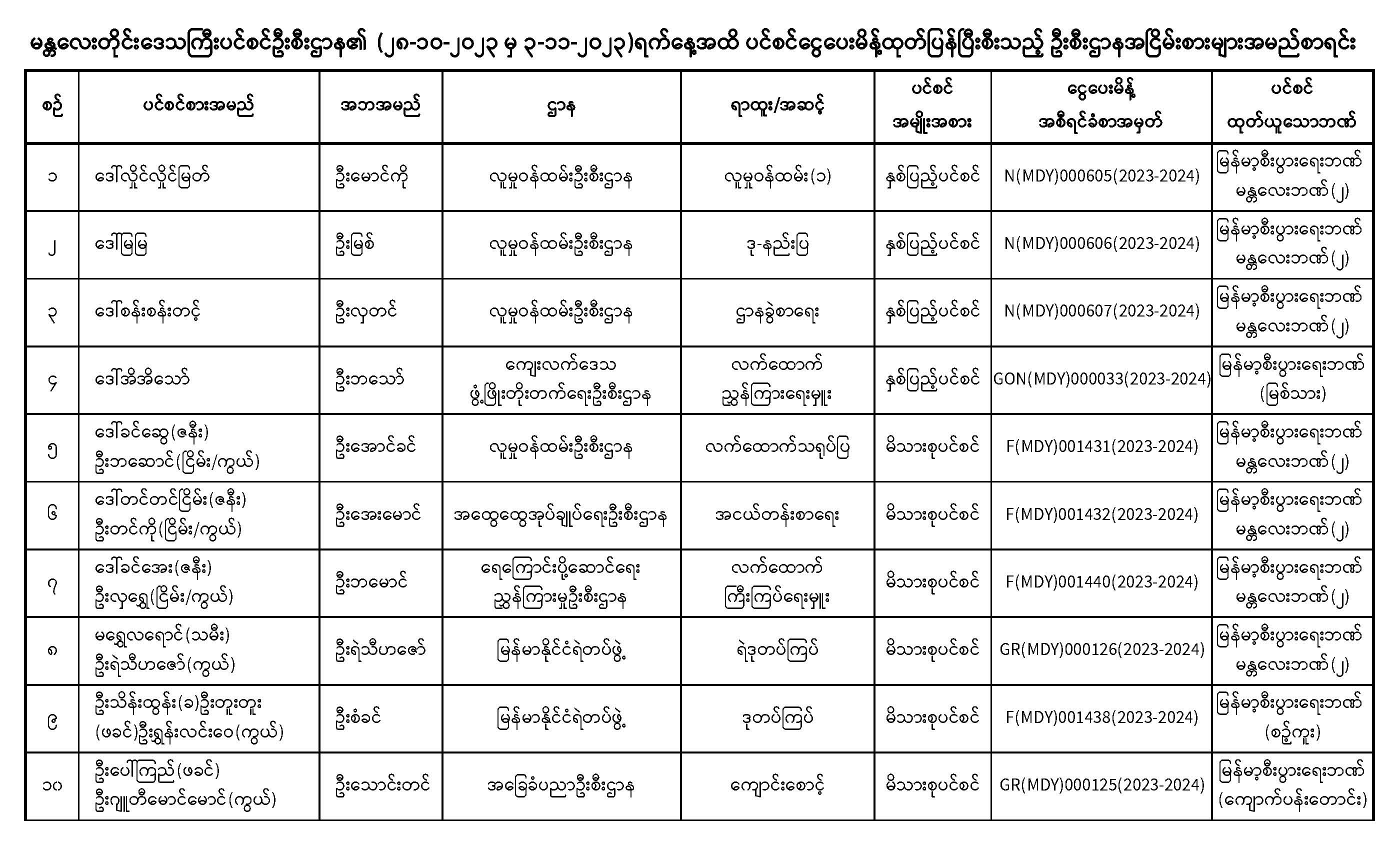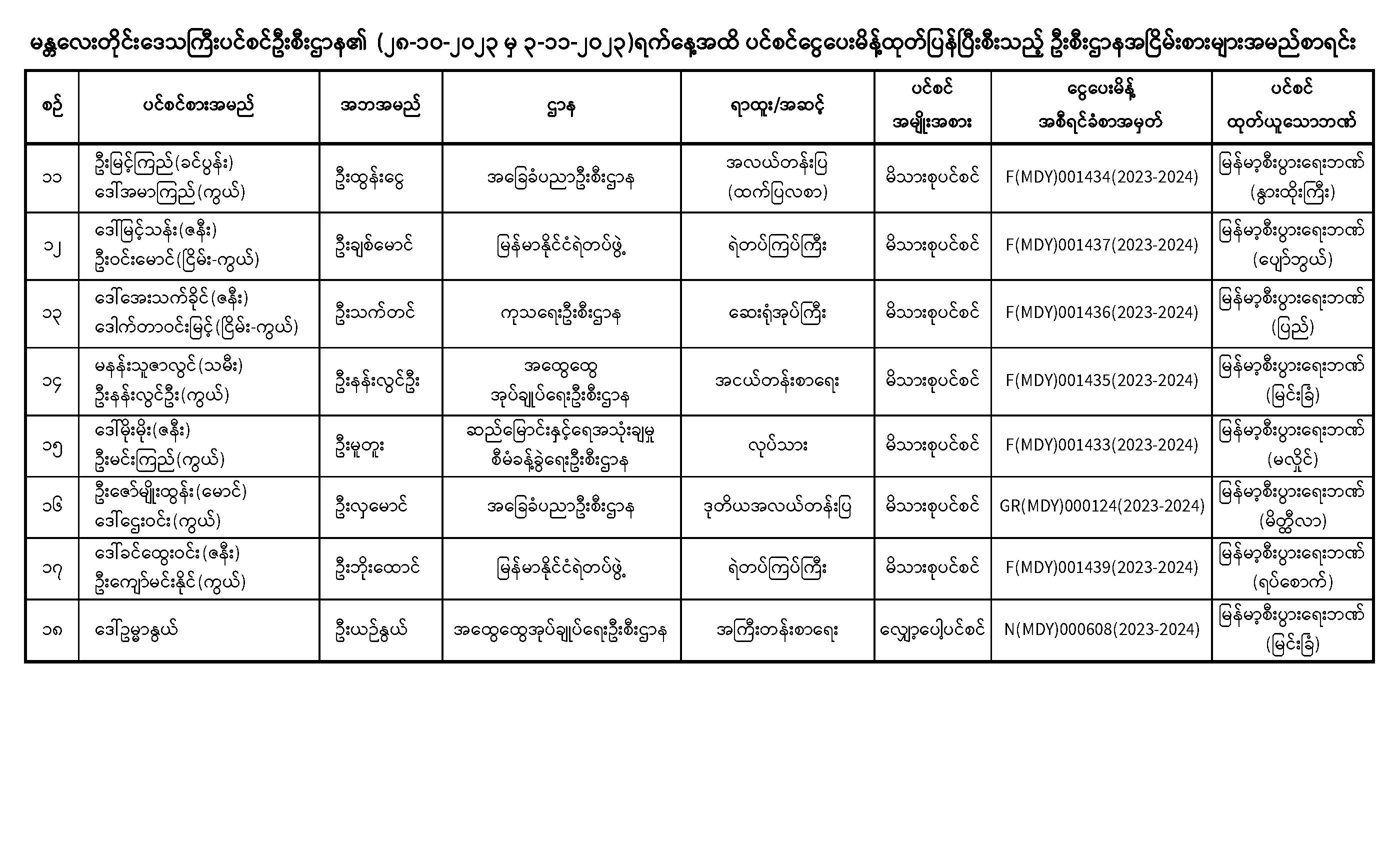 ပင်စင်ဦးစီးဌာန၊ မန္တလေးတိုင်းဒေသကြီးဦးစီးမှူးရုံး၏ ငွေပေးမိန့်ထုတ်ပြန်မှုစာရင်း (၂၈-၁၀-၂၀၂၃ မှ ၃-၁၁-၂၀၂၃) pension_editor Mon, 11/06/2023 - 16:05