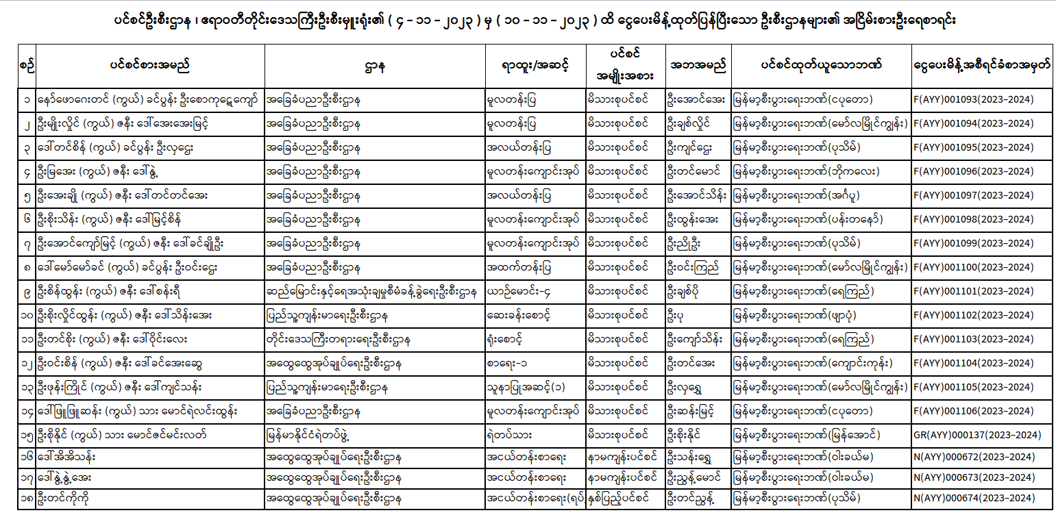 ပင်စင်ဦးစီးဌာန၊ ဧရာဝတီတိုင်းဒေသကြီးဦးစီးမှူးရုံး၏ ငွေပေးမိန့်ထုတ်ပြန်မှုစာရင်း (၄-၁၁-၂၀၂၃ မှ ၁၀-၁၁-၂၀၂၃) pension_editor Wed, 11/08/2023 - 15:24