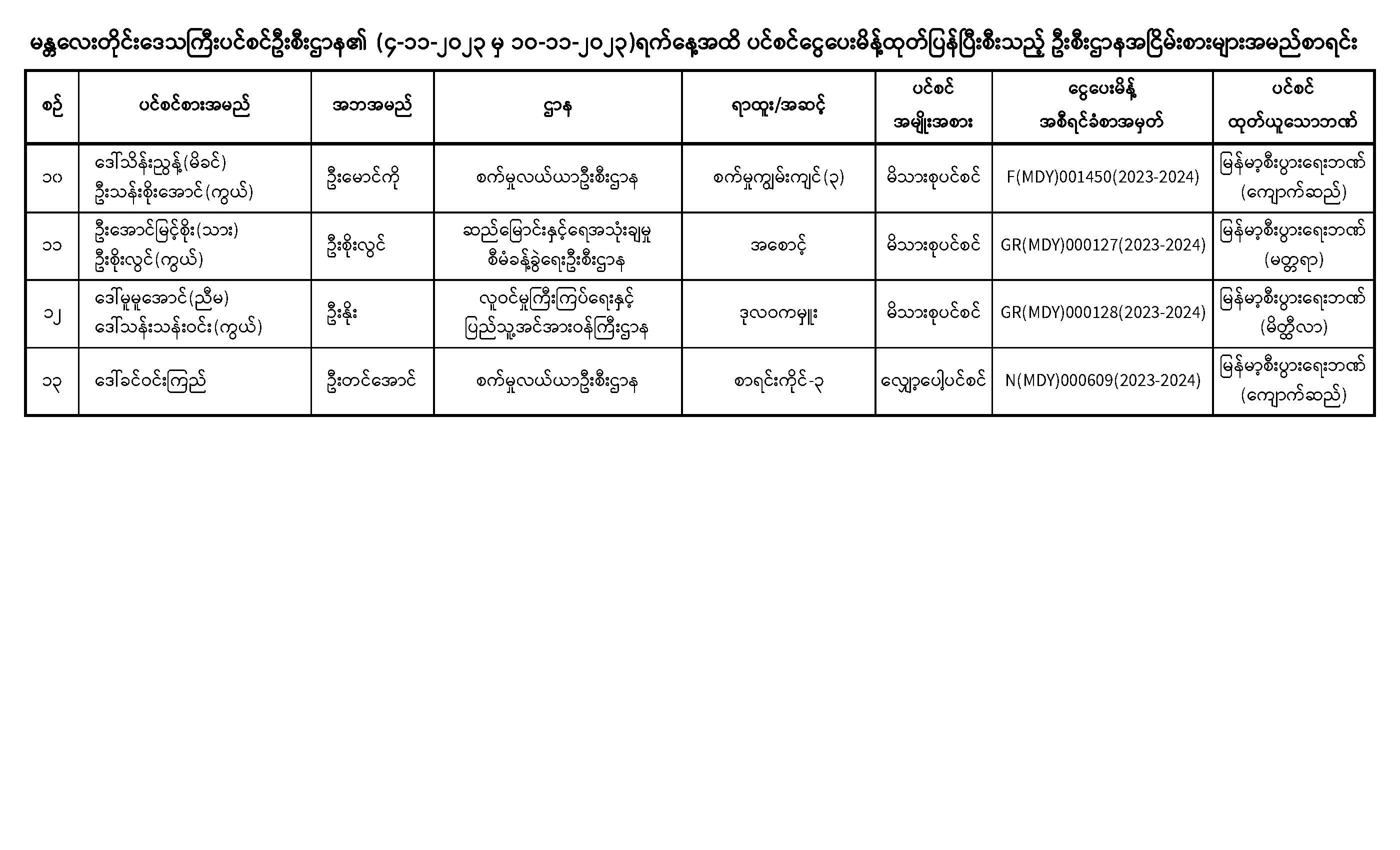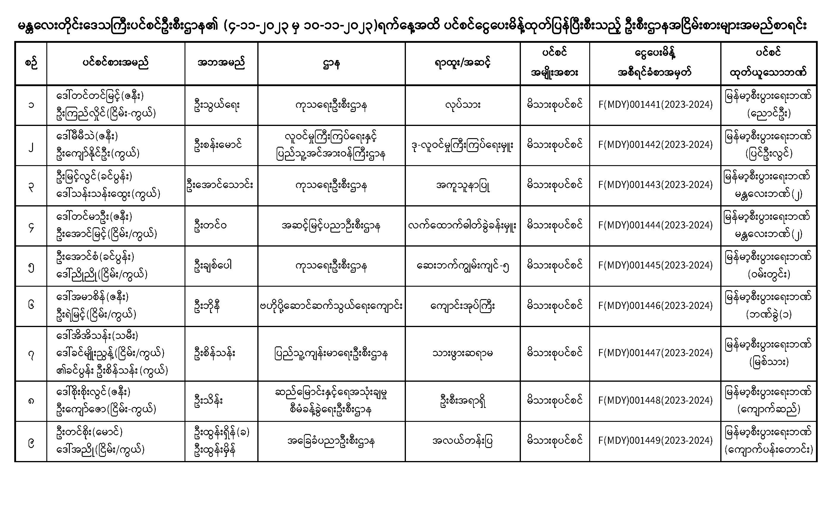 ပင်စင်ဦးစီးဌာန၊ မန္တလေးတိုင်းဒေသကြီးဦးစီးမှူးရုံး၏ ငွေပေးမိန့်ထုတ်ပြန်မှုစာရင်း (၄-၁၁-၂၀၂၃ မှ ၁၀-၁၁-၂၀၂၃)