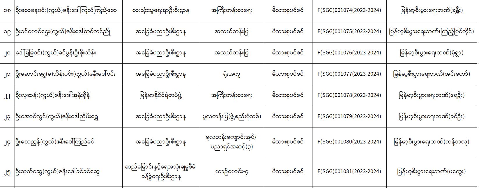ပင်စင်ဦးစီးဌာန၊ စစ်ကိုင်းတိုင်းဒေသကြီးဦးစီးမှူးရုံး၏ ငွေပေးမိန့်ထုတ်ပြန်မှုစာရင်း (၁၆-၁၁-၂၀၂၃ မှ ၃၀-၁၁-၂၀၂၃) pension_editor Thu, 11/30/2023 - 12:08