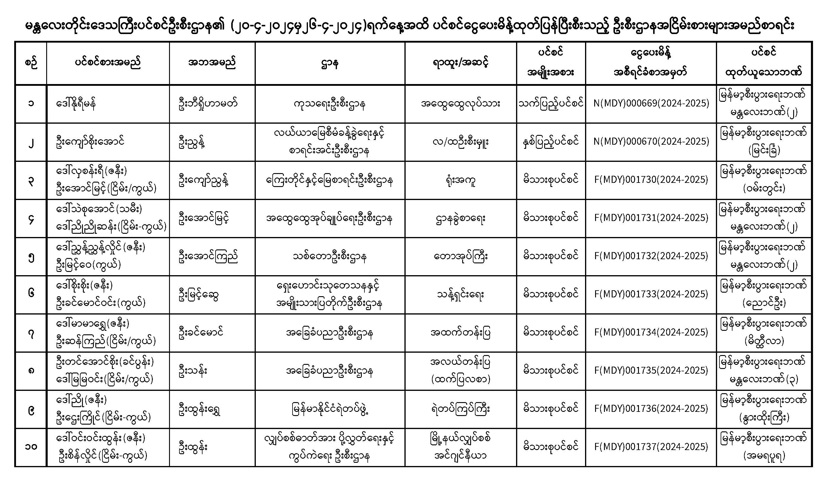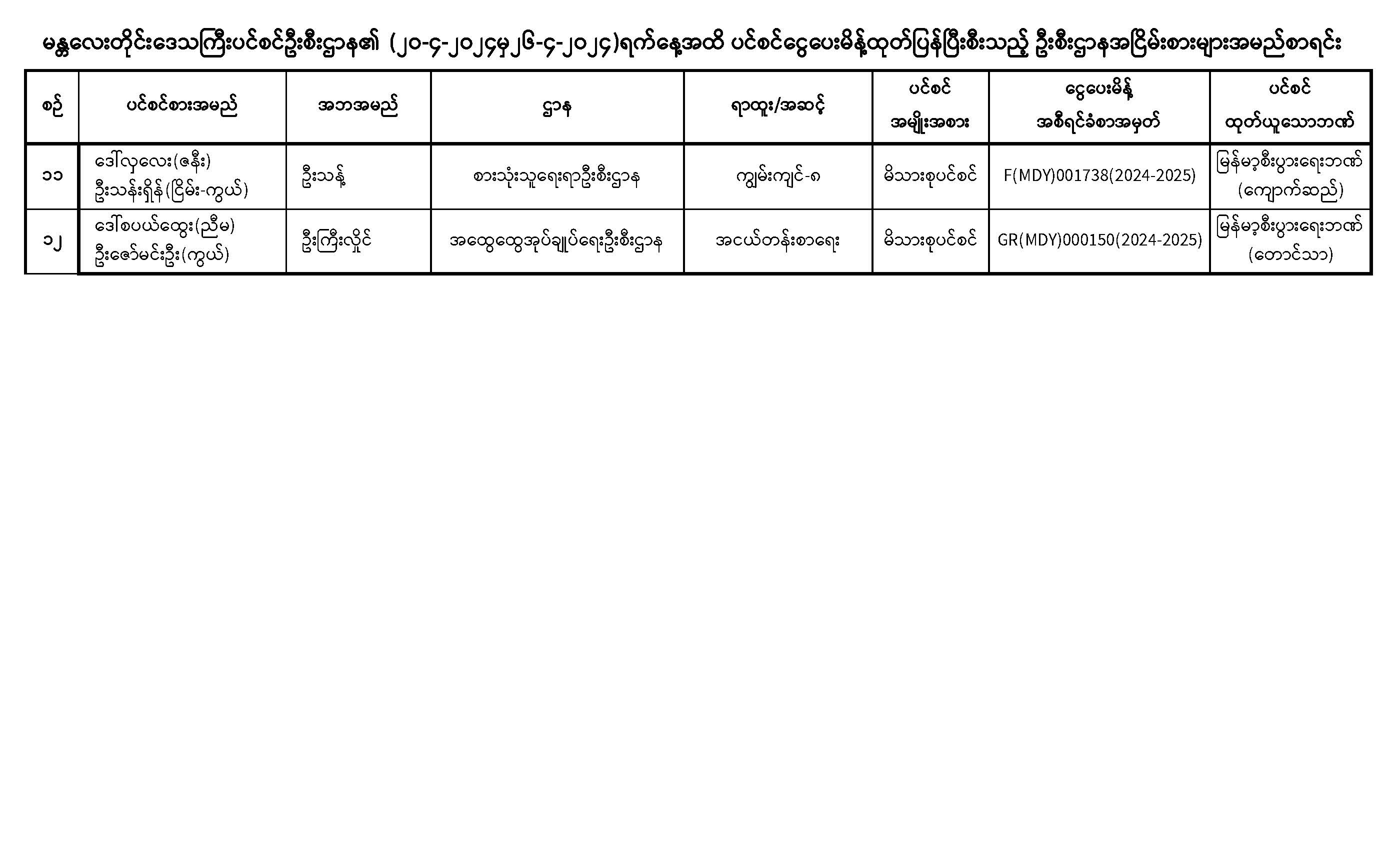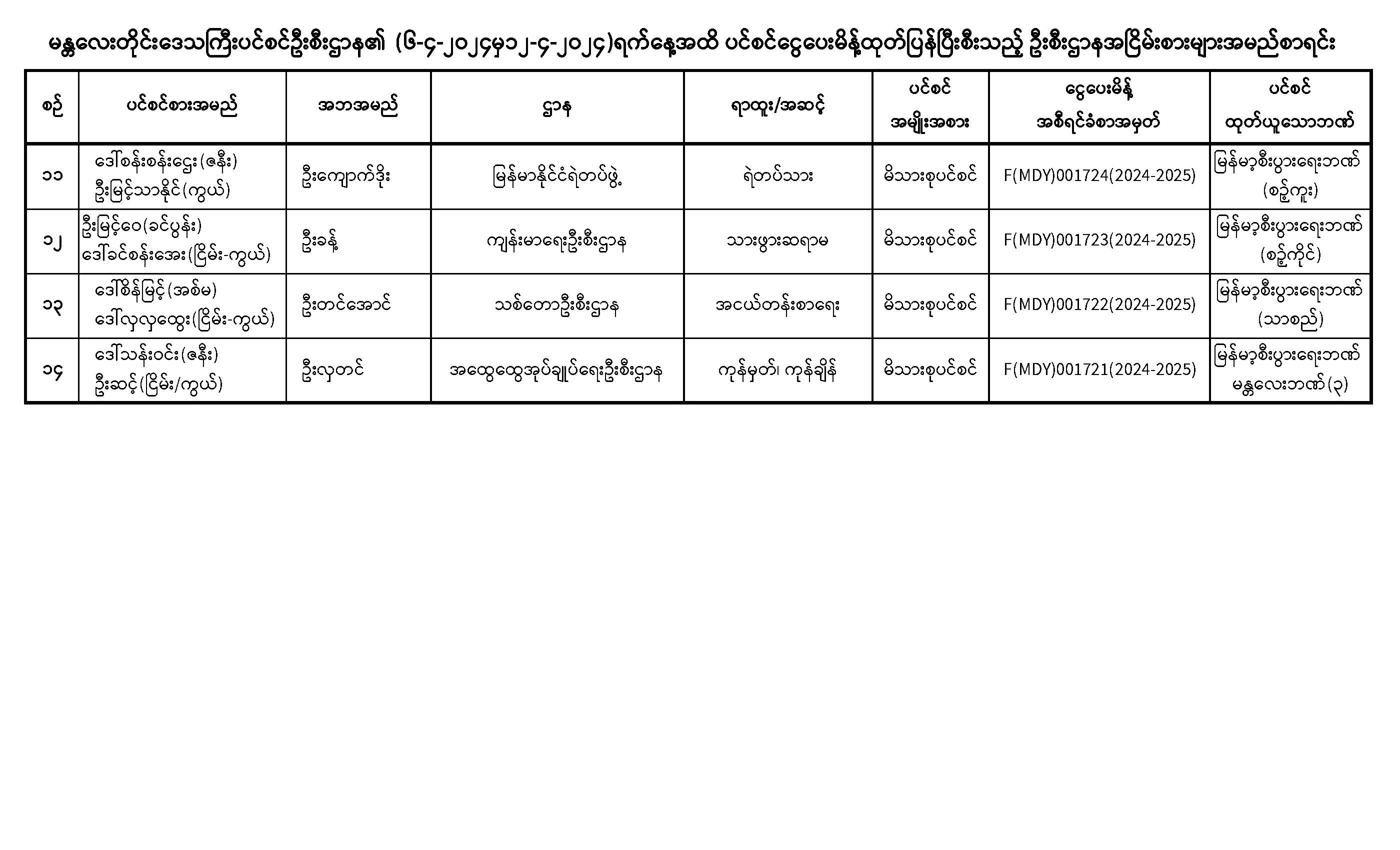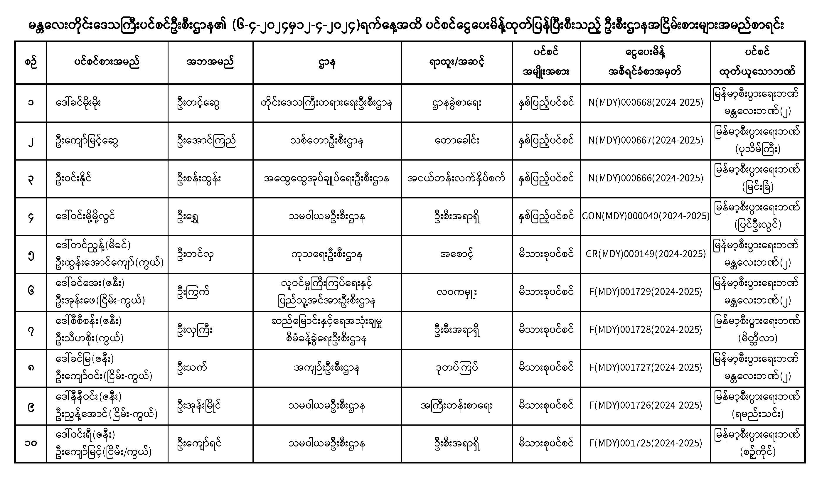 ပင်စင်ဦးစီးဌာန၊ မန္တလေးတိုင်းဒေသကြီးဦးစီးမှူးရုံး၏ ငွေပေးမိန့်ထုတ်ပြန်မှုစာရင်း (၆-၄-၂၀၂၄ မှ ၂၆--၄-၂၀၂၄) pension_editor Tue, 04/30/2024 - 15:35