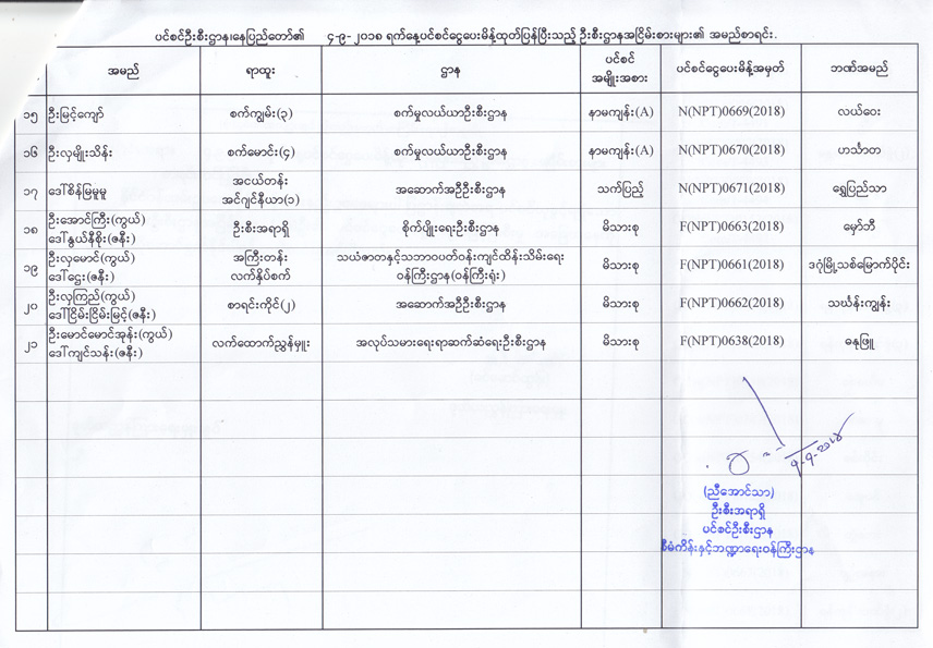 ပင်စင်ဦးစီးဌာန၊ နေပြည်တော်၏ ၄-၉-၂၀၁၈ ရက်နေ့ ပင်စင်ငွေပေးမိန့်ထုတ်ပြန်ပြီးသည့် ဦးစီးဌာနအငြိမ်းစားများ၏ အမည်စာရင်း