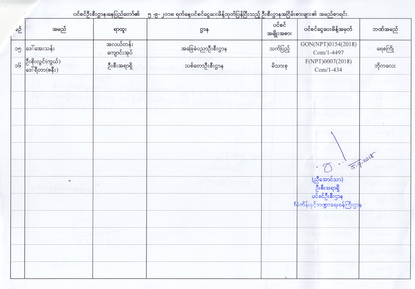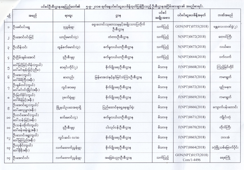 ပင်စင်ဦးစီးဌာန၊ နေပြည်တော်၏ ၅-၉-၂၀၁၈ ရက်နေ့ ပင်စင်ငွေပေးမိန့်ထုတ်ပြန်ပြီးသည့် ဦးစီးဌာနအငြိမ်းစားများ၏ အမည်စာရင်း