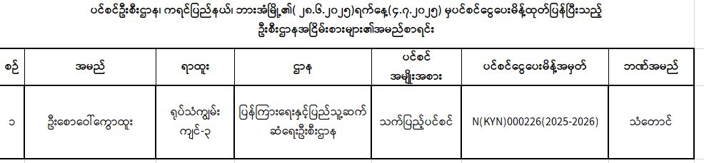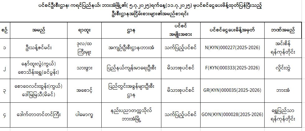 ပင်စင်ဦးစီးဌာန၊ ကရင်ပြည်နယ်ဦးစီးမှူးရုံး၏ ငွေပေးမိန့်ထုတ်ပြန်မှုစာရင်း (၂၈-၆-၂၀၂၅ မှ ၁၁-၇-၂၀၂၅)