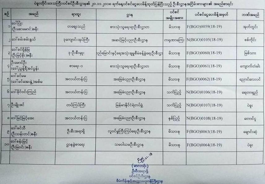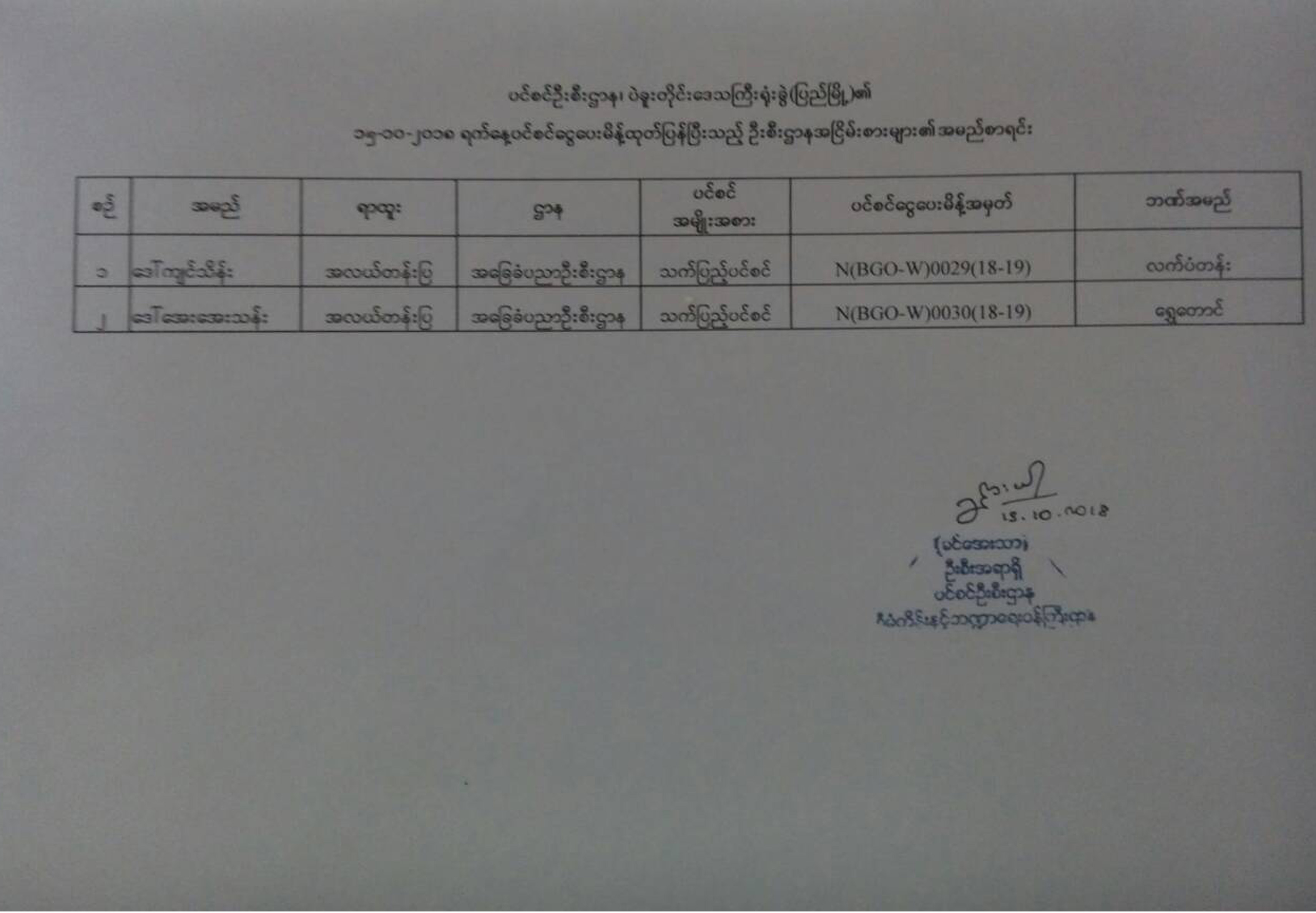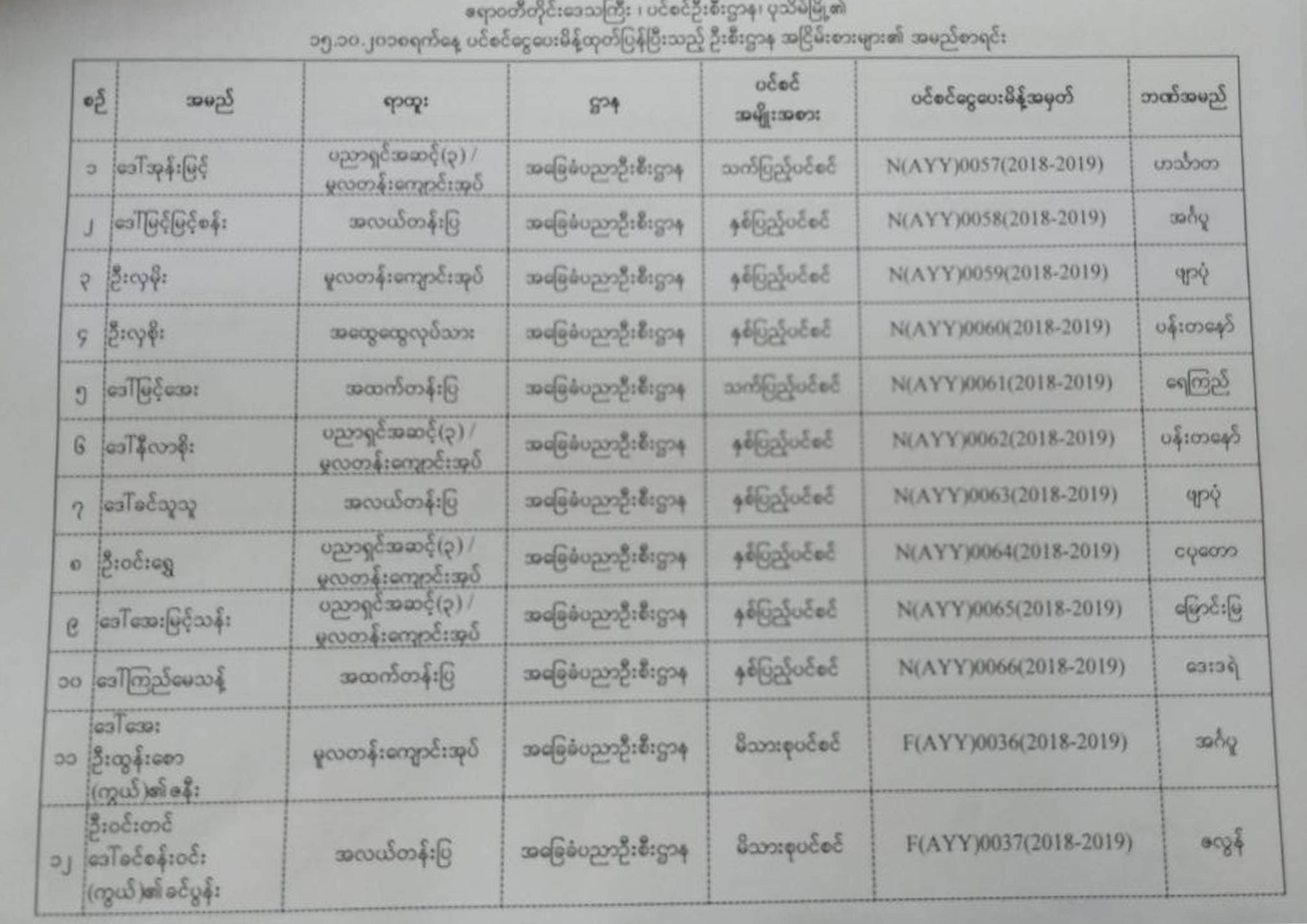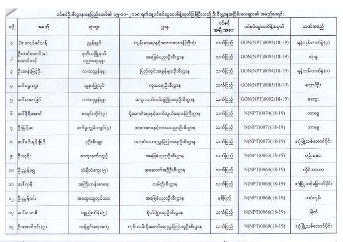ပင်စင်ဦးစီးဌာန၏ ၁၅-၁၀-၂၀၁၈ ရက်နေ့ ပင်စင်ငွေပေးမိန့်ထုတ်ပြန်ပြီးသည့် ဦးစီးဌာနအငြိမ်းစားများ၏ အမည်စာရင်း pension_editor Tue, 10/16/2018 - 11:36