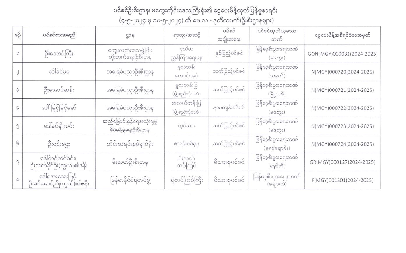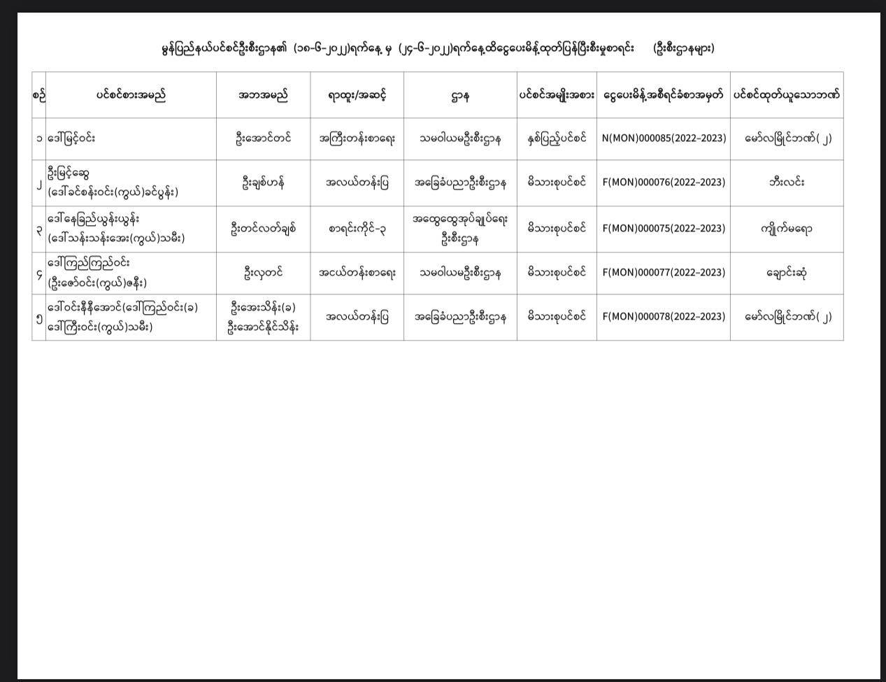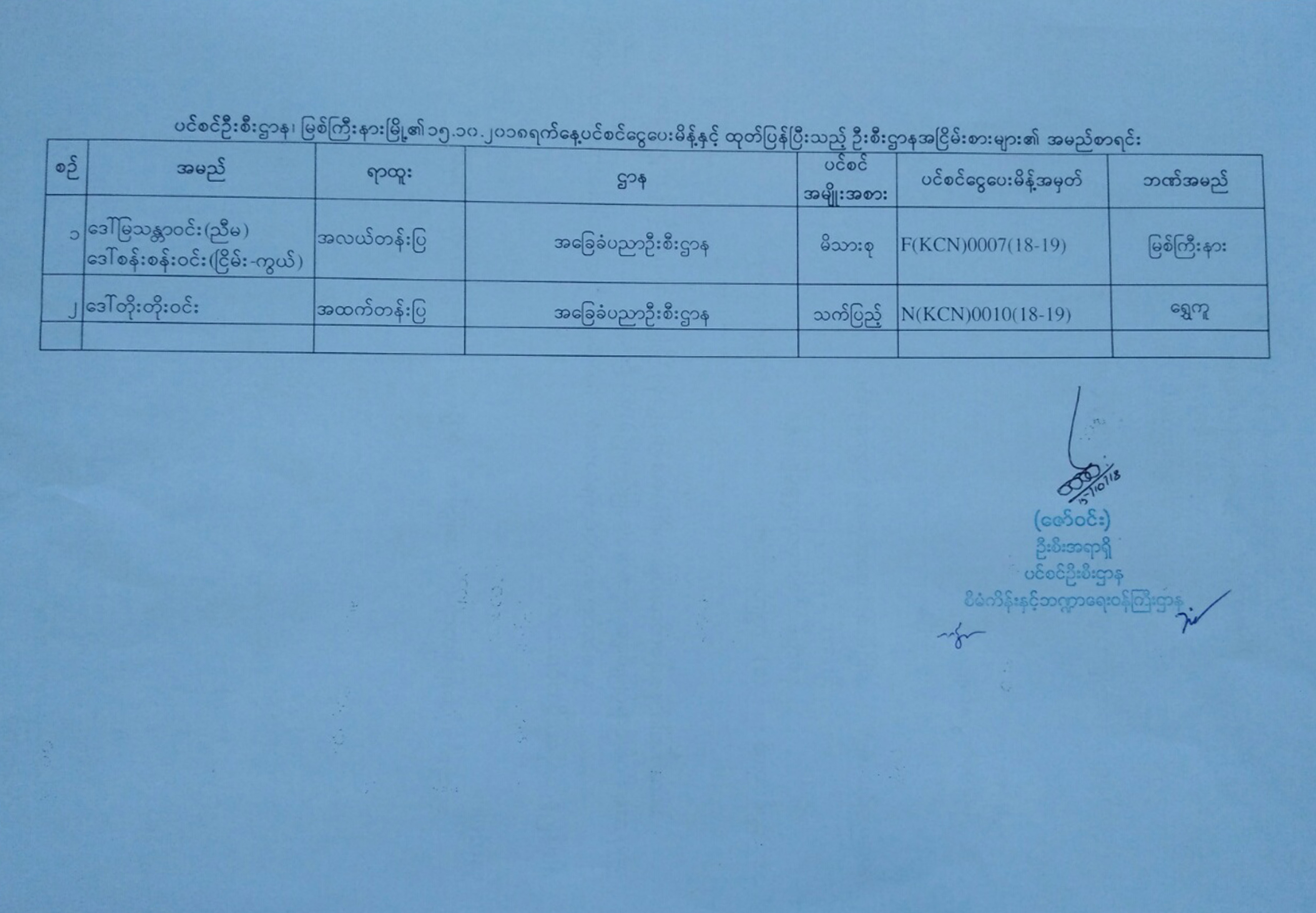 ပင်စင်ဦးစီးဌာန၏ ၁၅-၁၀-၂၀၁၈ ရက်နေ့ ပင်စင်ငွေပေးမိန့်ထုတ်ပြန်ပြီးသည့် ဦးစီးဌာနအငြိမ်းစားများ၏ အမည်စာရင်း pension_editor Tue, 10/16/2018 - 11:36