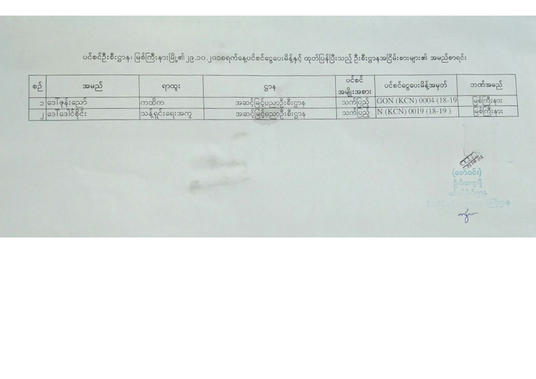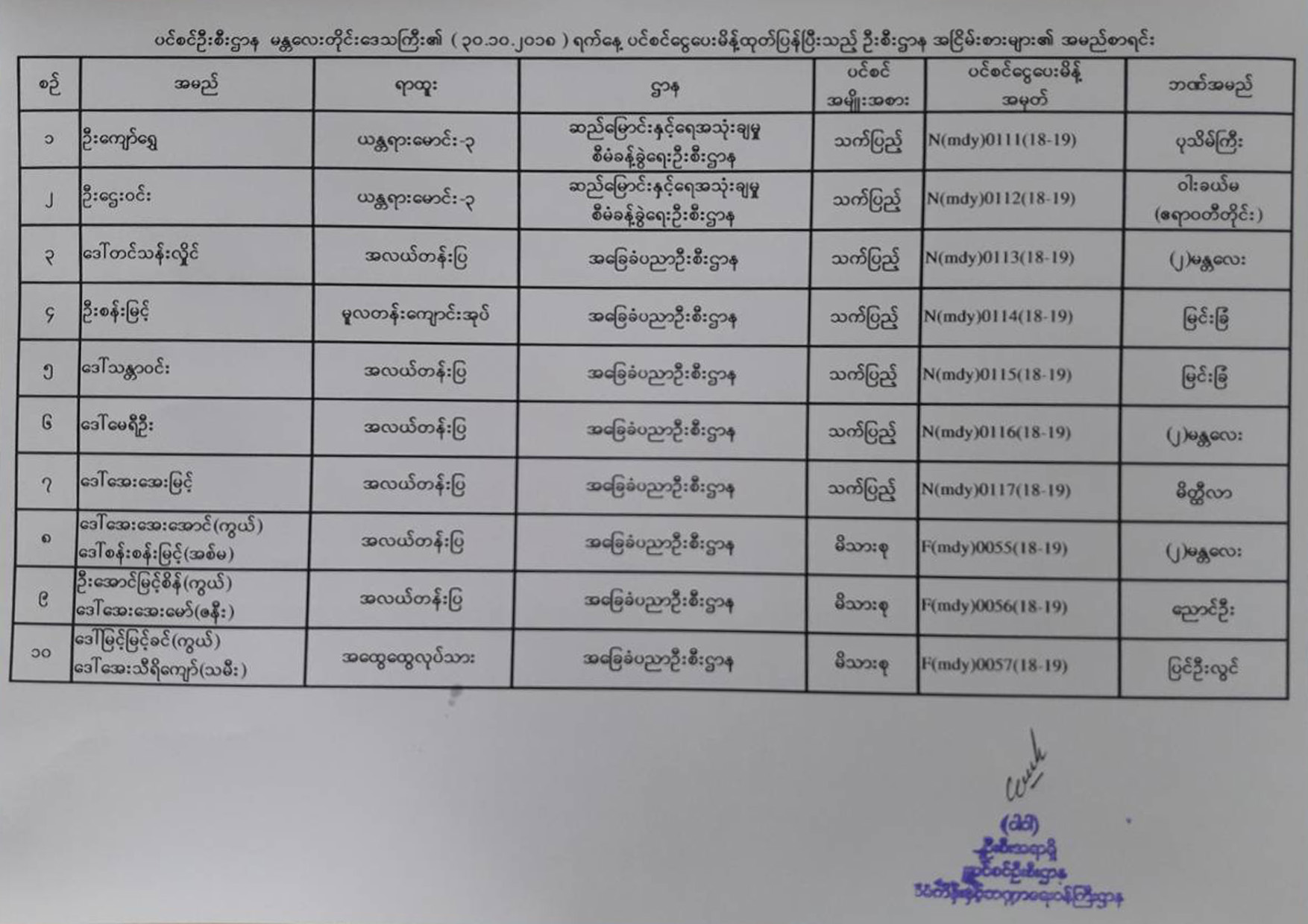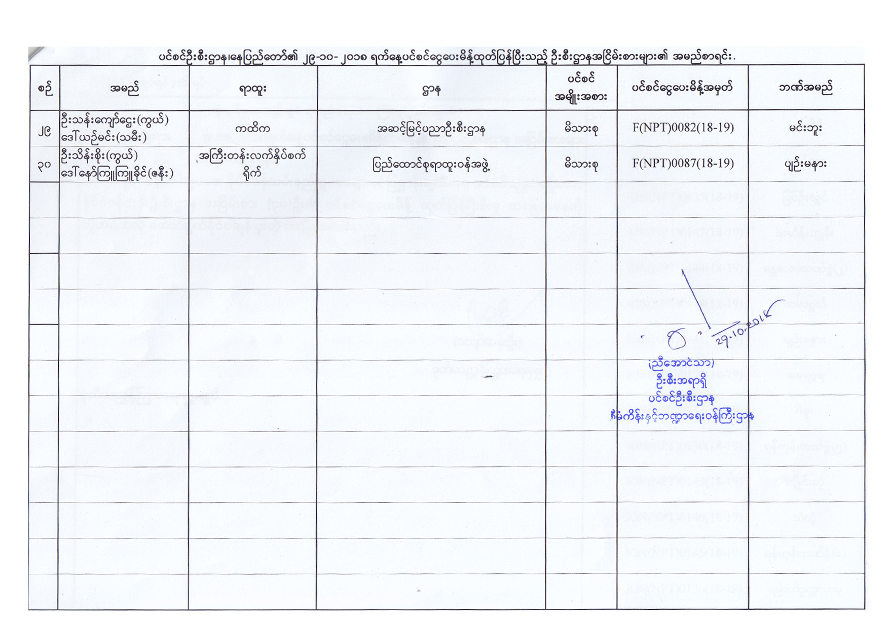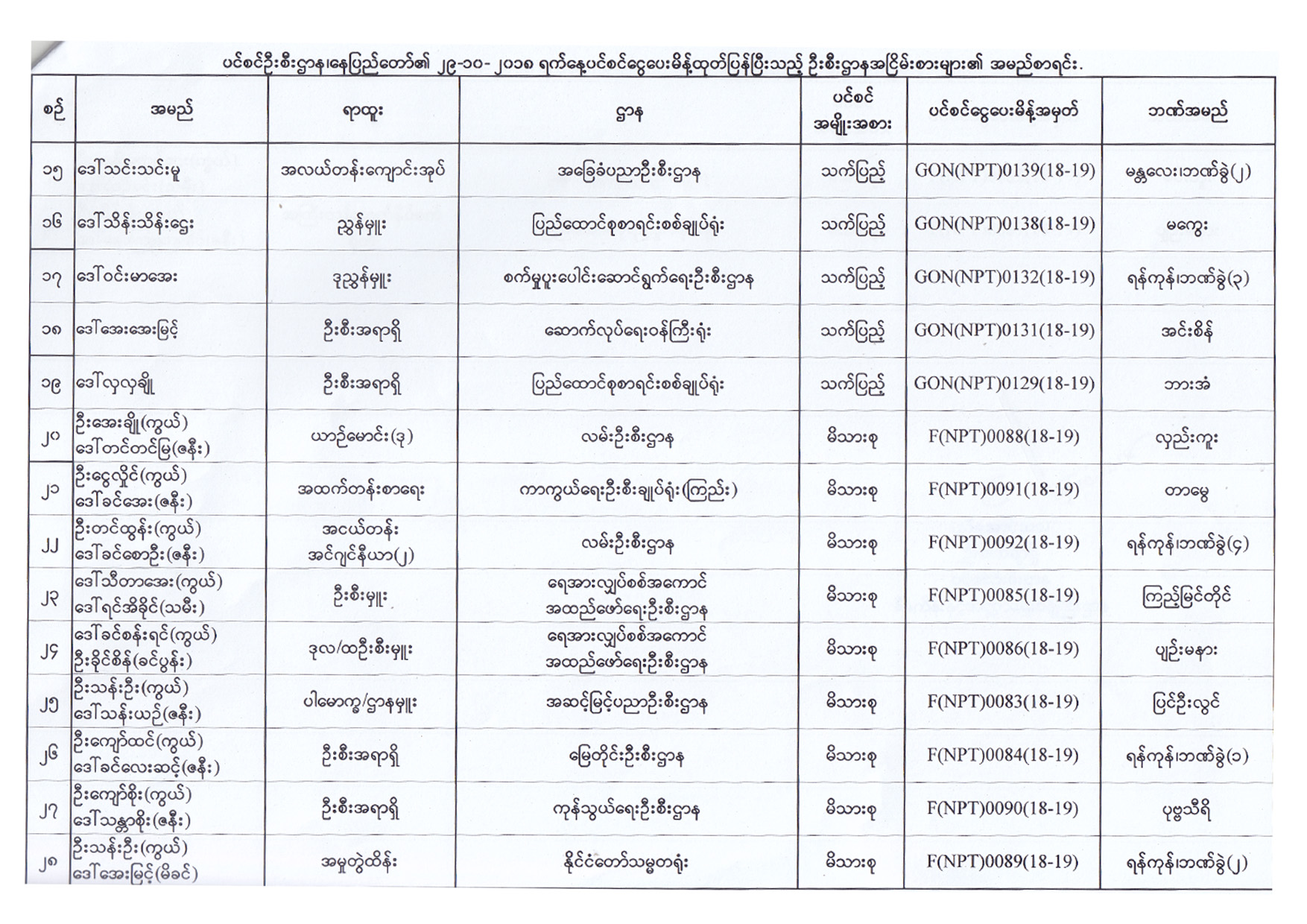 ပင်စင်ဦးစီးဌာန၏ ၂၉-၁၀-၂၀၁၈ ရက်နေ့ ပင်စင်ငွေပေးမိန့်ထုတ်ပြန်ပြီးသည့် ဦးစီးဌာနအငြိမ်းစားများ၏ အမည်စာရင်း