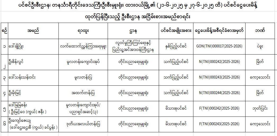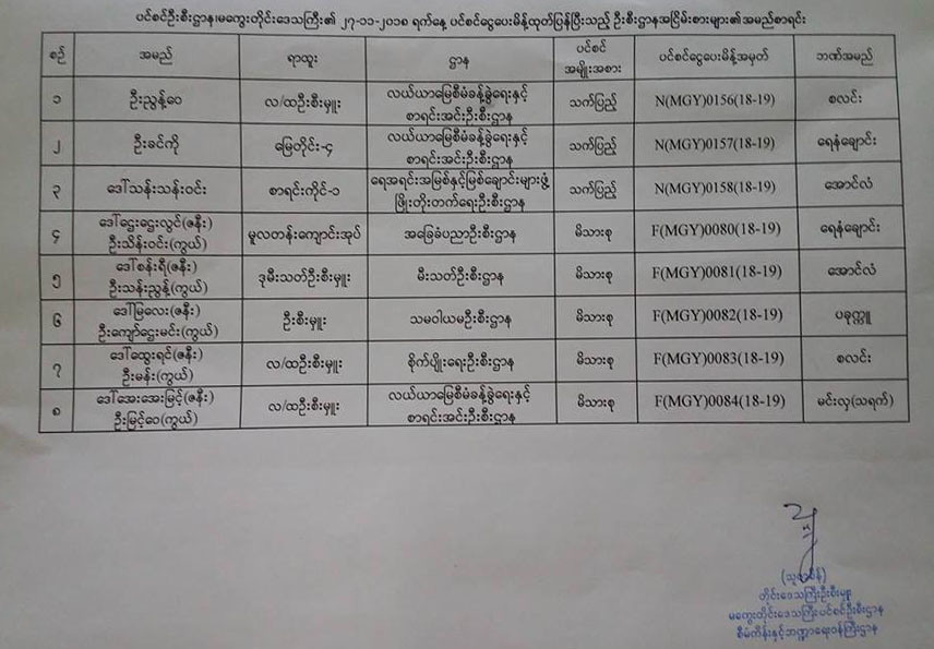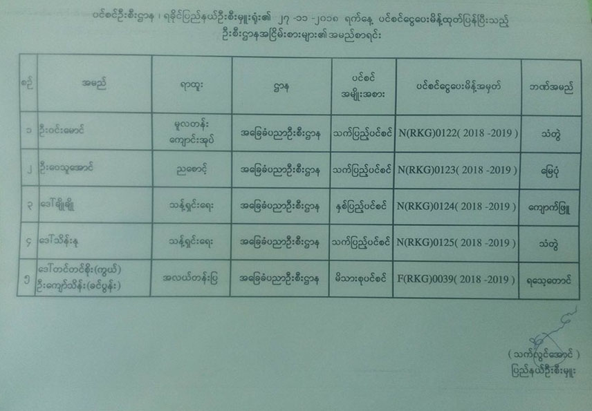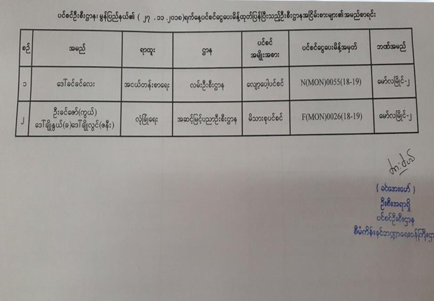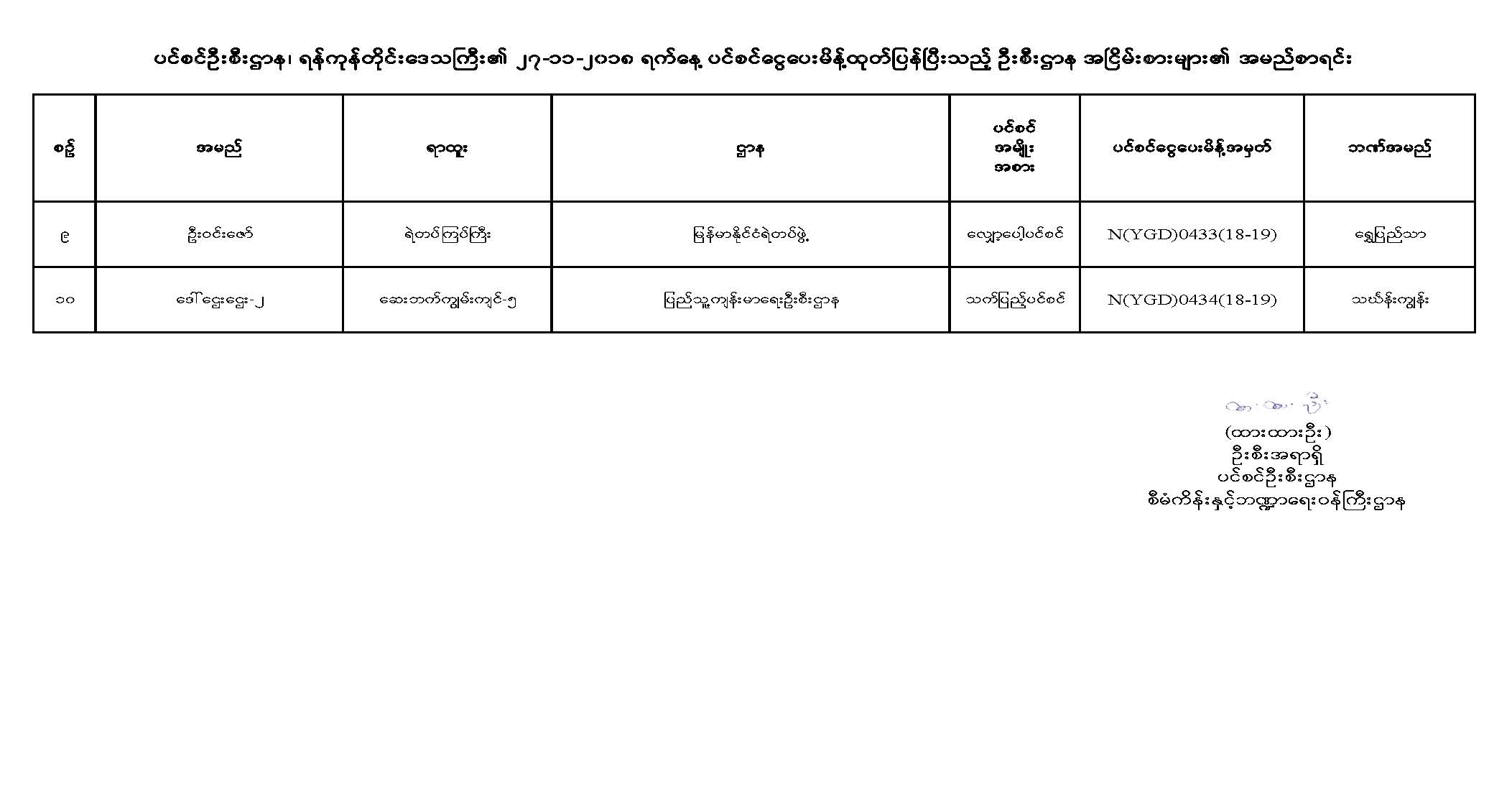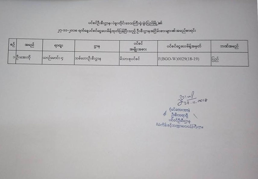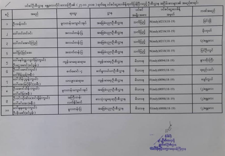 ပင်စင်ဦးစီးဌာန၏ ၂၇-၁၁-၂၀၁၈ ရက်နေ့ ပင်စင်ငွေပေးမိန့် ထုတ်ပြန်ပြီးသည့် ဦးစီးဌာန အငြိမ်းစားများ၏အမည်စာရင်း