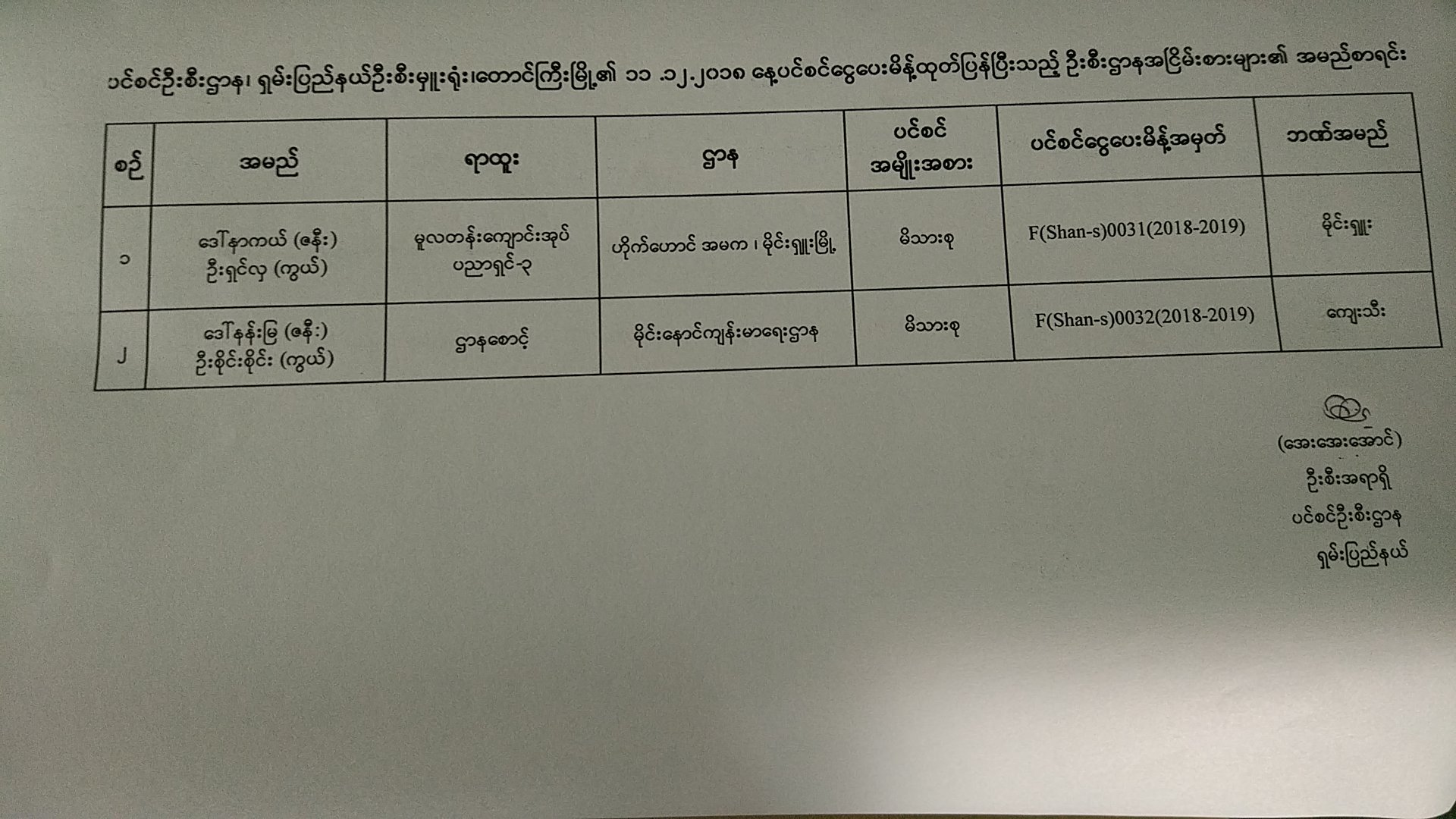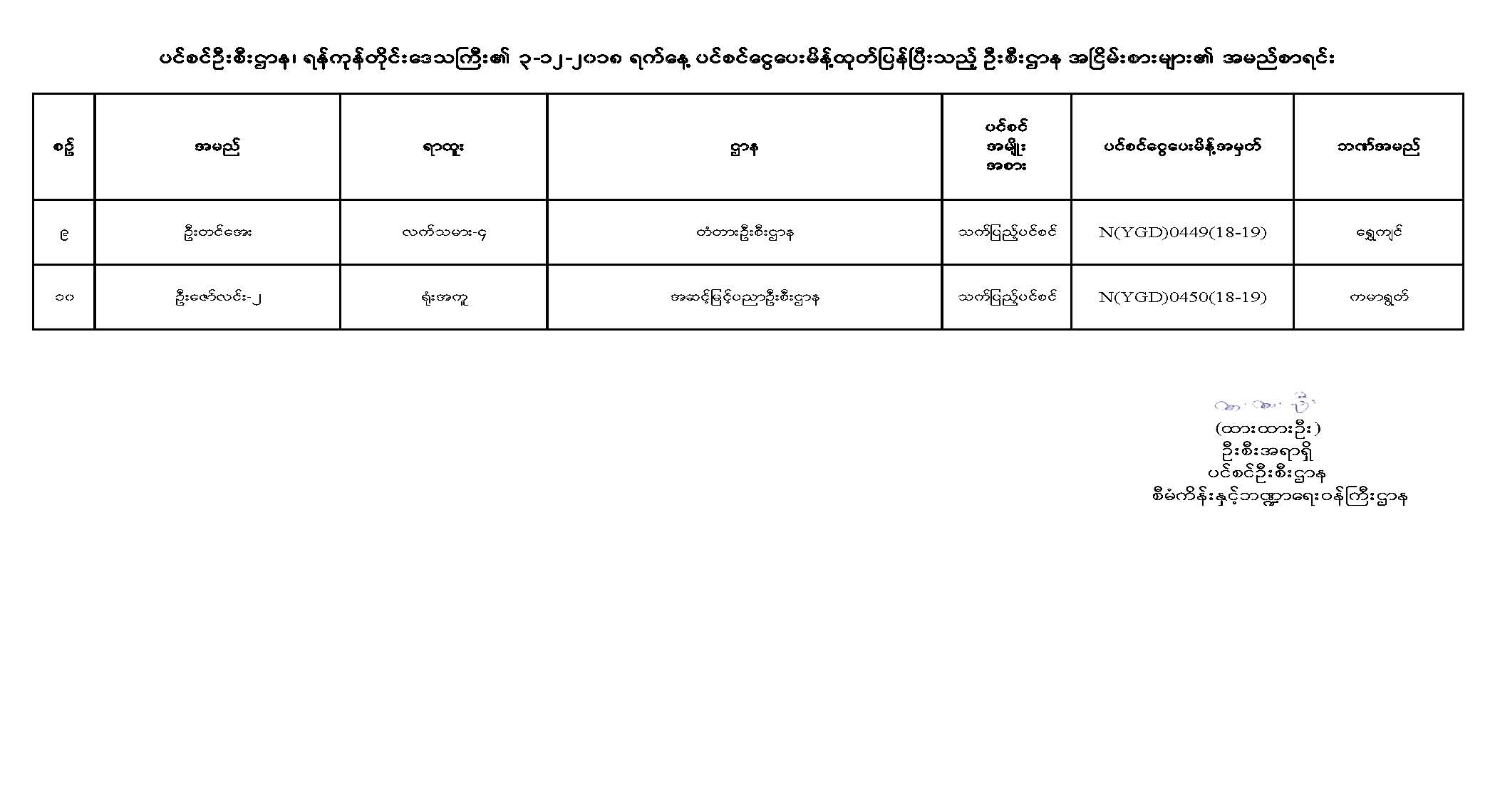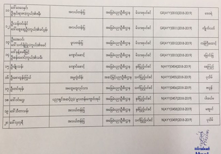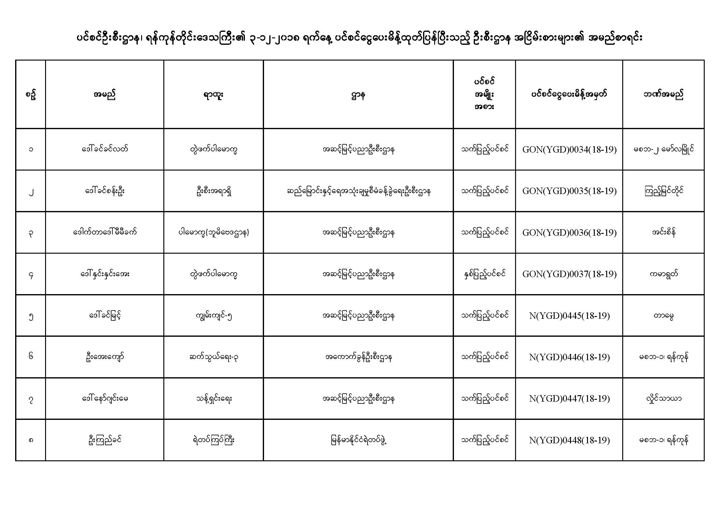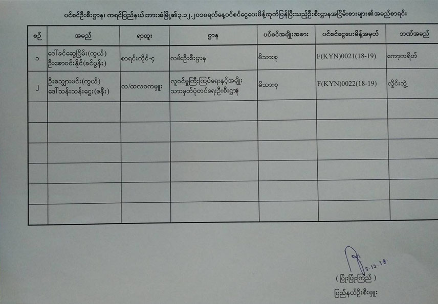 ပင်စင်ဦးစီးဌာန၏ ၃-၁၂-၂၀၁၈ ရက်နေ့ ပင်စင်ငွေပေးမိန့် ထုတ်ပြန်ပြီးသည့် ဦးစီးဌာန အငြိမ်းစားများ၏အမည်စာရင်း