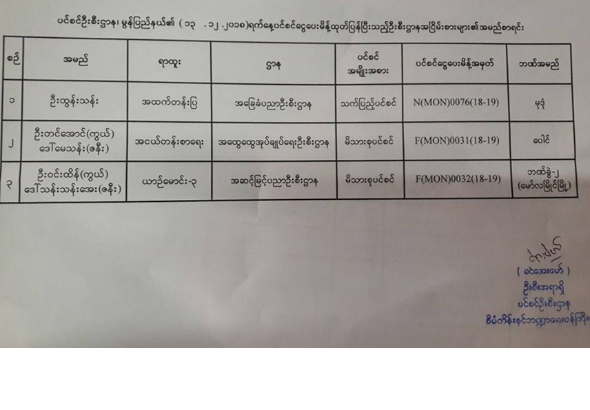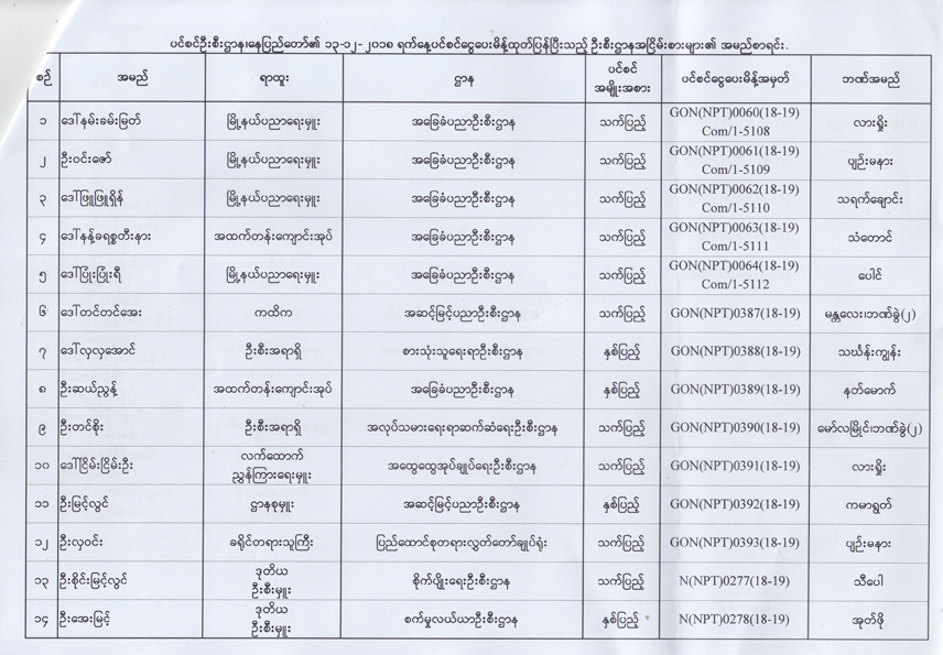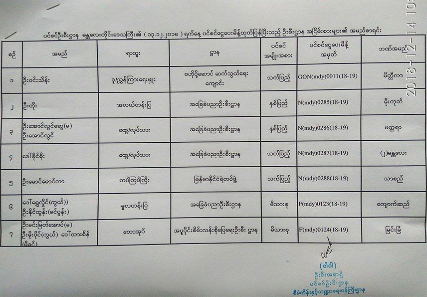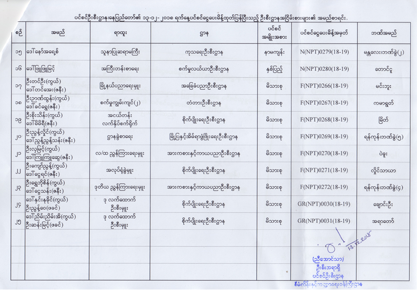ပင်စင်ဦးစီးဌာန၏ ၁၃-၁၂-၂၀၁၈ ရက်နေ့ ပင်စင်ငွေပေးမိန့်ထုတ်ပြန်ပြီးသည့် ဦးစီးဌာနအငြိမ်းစားများ၏ အမည်စာရင်း pension_editor Fri, 12/14/2018 - 14:13