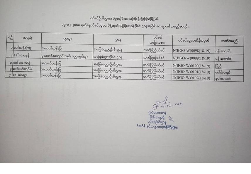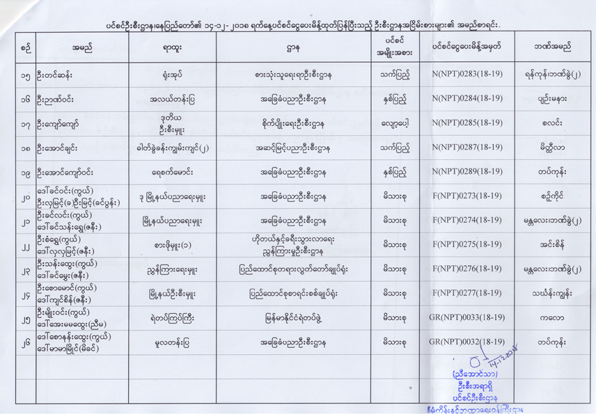 ပင်စင်ဦးစီးဌာန၏ ၁၄-၁၂-၂၀၁၈ ရက်နေ့ ပင်စင်ငွေပေးမိန့်ထုတ်ပြန်ပြီးသည့် ဦးစီးဌာနအငြိမ်းစားများ၏ အမည်စာရင်း pension_editor Mon, 12/17/2018 - 13:45