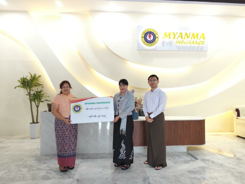 မြန်မာ့အာမခံလုပ်ငန်းတွင် မီးအာမခံနှင့် အတူ မြေငလျင်အကာအကွယ်ယူ၍ အာမခံထားရှိသော ဦးခင်မောင်သန်း (Mizzuri -ဆိုင်) (ပိုင်) အဆောက်အဦနှင့် ကုန်ပစ္စည်းများသည် (၂၈-၃-၂၀၂၅) ရက်နေ့တွင် အင်အားအလွန်ပြင်းထန်သော မြေငလျင်လှုပ်ခတ်မှုကြောင့် တစ်စိတ်တစ်ဒေသ ပျက်စီးဆုံးရှုံးမှုအတွက် လျော်ကြေးငွေ ကျပ် ၂၉၁.၈၃၉ သန်းအား (၁၇-၇-၂၀၂၅) ရက်နေ့တွင် ပေးအပ်ခဲ့ပါသည်။