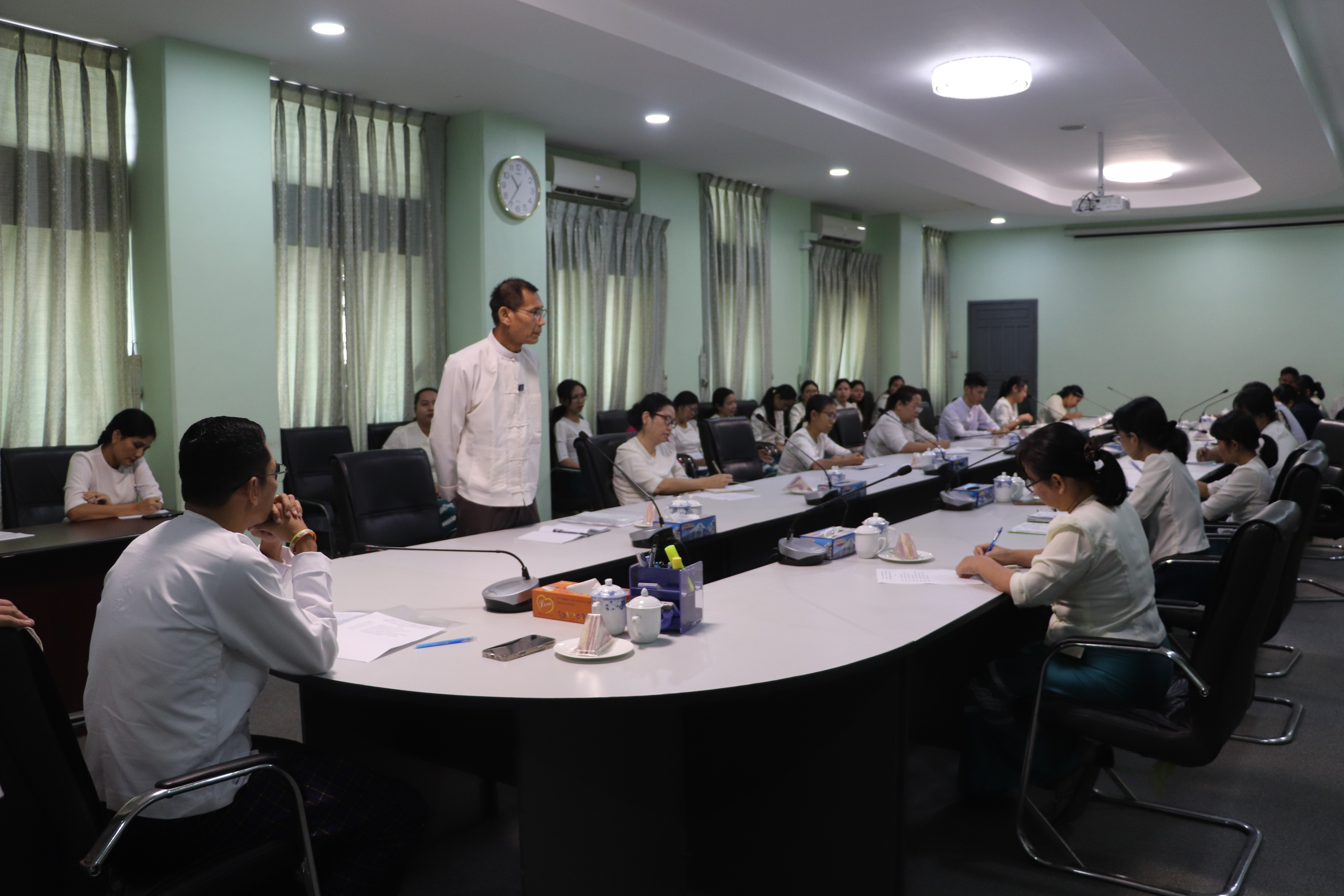 ဆက်လက်၍ ဒုတိယညွှန်ကြားရေးမှူးချုပ်က ပွင့်လင်းရာသီရောက်ရှိလာပြီဖြစ်သည့်အတွက် မီးဘေးလုံခြုံရေးကို အထူးဂရုစိုက်ကြရမည်ဖြစ်ကြောင်း၊ ကော်မရှင်ရုံးအနေဖြင့်လည်း မီးဘေးလုံခြုံရေးစီမံချက်ကို ရေးဆွဲပြီးဖြစ်ကြောင်းနှင့် ဝန်ထမ်းများအနေဖြင့် စီမံချက်ပါဆောင်ရွက်ရန်အချက်များကို မိမိတို့အားတာဝန်ချထားသည့်အတိုင်း လိုက်နာဆောင်ရွက်ကြရန်လိုကြောင်းနှင့် ရုံးသန့်ရှင်းရေးကိုလည်း အပတ်စဉ်သောကြာနေ့တိုင်း စုပေါင်းလုပ်ဆောင်ကြရန် ပြောကြားခဲ့ပါသည်။