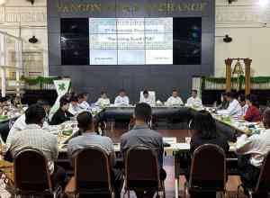 ရန်ကုန်စတော့အိတ်ချိန်း၏ စာရင်းဝင်အကြိုဈေးကွက်တွင် အစုရှယ်ယာရှင် ၁၀၀ ဦးနှင့်အထက် အများပိုင်ကုမ္ပဏီများက လွယ်ကူစွာဝင်ရောက်မှတ်ပုံတင်နိုင်ရေးအတွက် စာရင်းဝင်အကြိုဈေးကွက်ဆိုင်ရာ စကားဝိုင်းဆွေးနွေးပွဲ (Roundtable Discussion on Pre-Listing Board-PLB) ကို ၂၀၂၃ ခုနှစ်၊ အောက်တိုဘာလ ၆ ရက် မွန်းလွဲပိုင်းက ရန်ကုန်စတော့အိတ်ချိန်းပင်မခန်းမ၌ကျင်းပသည်။