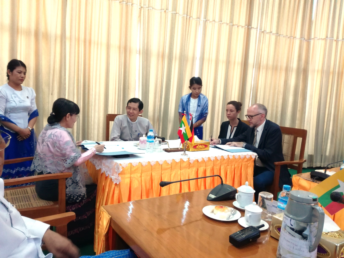 လယ်ယာကဏ္ဍဘက်စုံဖွံ့ဖြိုးတိုးတက်ရေးစီမံကိန်းအတွက် Agence Francaise Development (AFD) မှ ပေးအပ်သည့် ချေးငွေအား ရယူရန်အတွက် လက်မှတ်ရေးထိုးပွဲအခမ်းအနား