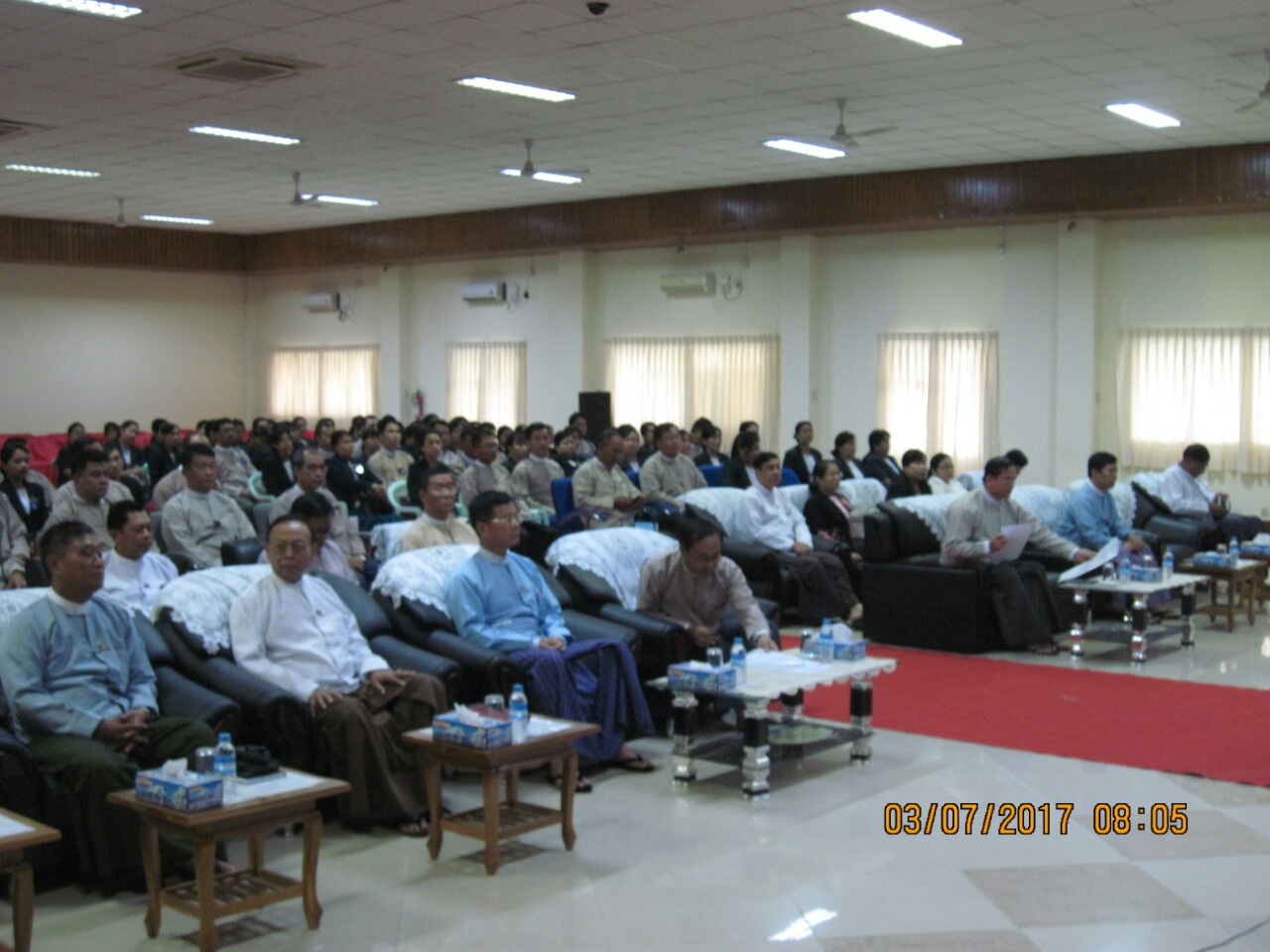 စီမံကိန်းနှင့် ဘဏ္ဍာရေးဝန်ကြီးဌာန၊ ပြည်တွင်းအခွန်များဦးစီးဌာန၊ မြို့နယ်အခွန်ဦးစီး ဌာနမှူးလုပ်ငန်းကျွမ်းကျင်မှုသင်တန်း အမှတ်စဉ် (၅၉) သင်တန်းဖွင့်ပွဲအခမ်းအနား ကို ၂၀၁၇ ခုနှစ် ဇူလိုင်လ ၃ ရက်နေ့ နံနက် ၈:၀၀ နာရီတွင် ရုံးအမှတ် (၄၆)၊ ပြည်တွင်းအခွန်များ ဦးစီးဌာန၊ Multi Hall ၌ ကျင်းပရာ စီမံကိန်းနှင့် ဘဏ္ဍာရေးဝန်ကြီးဌာန၊ ဒုတိယဝန်ကြီး ဦးမောင်မောင်ဝင်းက တက်ရောက်အမှာစကားပြောကြားခဲ့ပါသည်။ အဆိုပါအခမ်းအနားသို့ ပြည်တွင်းအခွန်များဦးစီးဌာန၊ ညွှန်ကြားရေးမှူးချုပ် ဦးမင်းထွဋ်၊ စီမံကိန်းနှင့် ဘဏ္ဍာရေး ဝန်ကြီးဌာန လက်အောက်ရှိ ဦးစီးဌာနများ / အဖွဲ့အစည်းများမှ ညွှန်ကြားရေးမှူး ချုပ်များ၊ ဦးဆောင်ညွှန်ကြားရေးမှူးများ၊ ဒုတိယညွှန်ကြားရေးမှူးချုပ်များ၊ ညွှန်ကြားရေးမှူးများ၊ သင်တန်းဆရာ၊ ဆရာမများ နှင့် သင်တန်းသား၊ သင်တန်းသူများ တက်ရောက်ခဲ့ပါသည်။ အခမ်းအနားကို နံနက် ၈:၄၅ နာရီတွင် ရုတ်သိမ်းခဲ့ပါသည်။