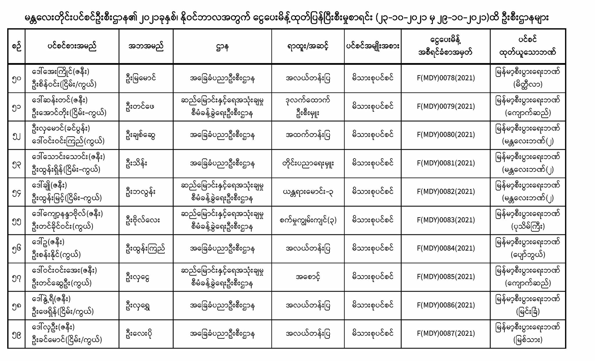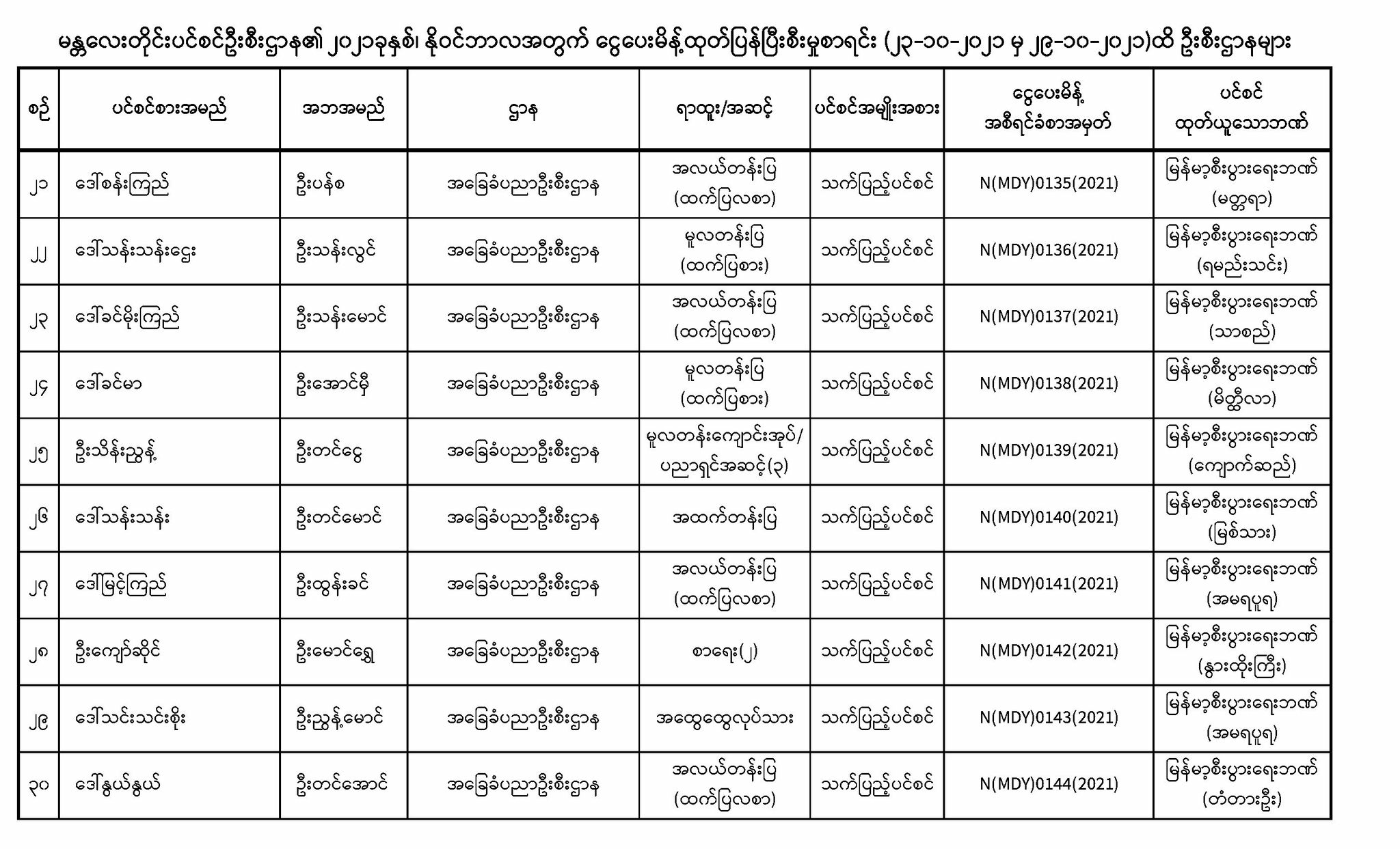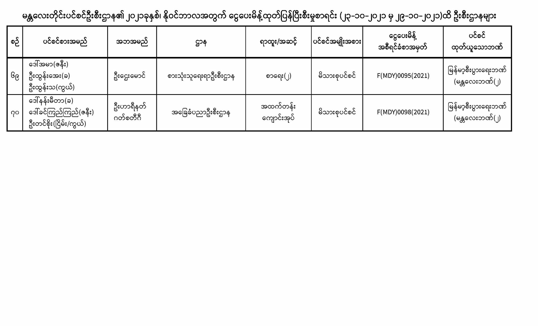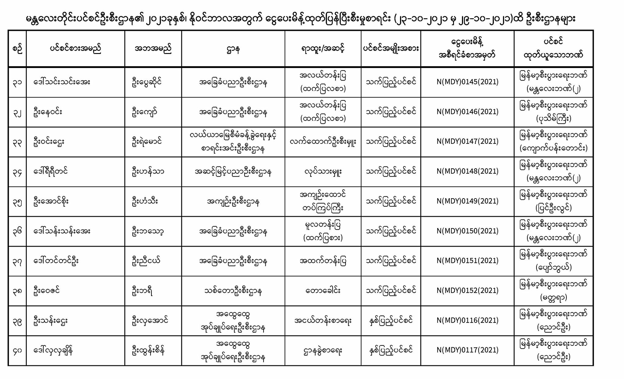 ပင်စင်ဦးစီးဌာန၊ မန္တလေးတိုင်းဒေသကြီး၏ ငွေပေးမိန့်ထုတ်ပြန်မှုစာရင်း (၂၃-၁၀-၂၀၂၁ မှ ၂၉-၁၀-၂၀၂၁) pdfinance_editor Wed, 11/10/2021 - 11:05