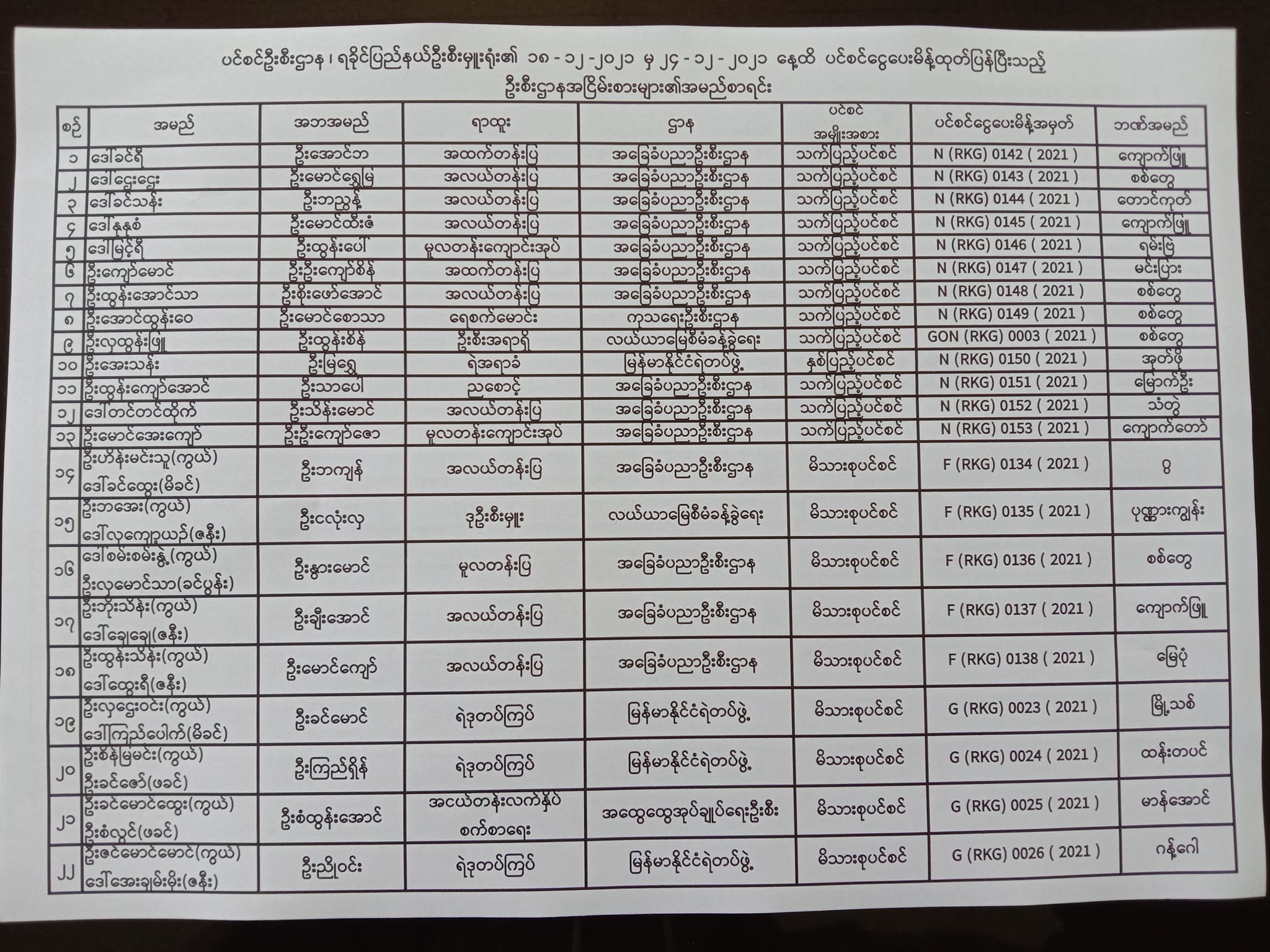ပင်စင်ဦးစီးဌာန၊ ရခိုင်ပြည်နယ်၏ ငွေပေးမိန့်ထုတ်ပြန်မှုစာရင်း (၁၅-၁၂-၂၀၂၁ မှ ၃၁-၁၂-၂၀၂၁) pdfinance_editor Mon, 01/03/2022 - 16:03
