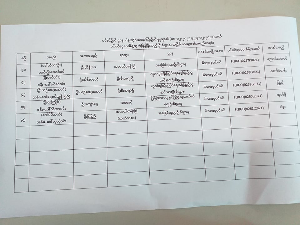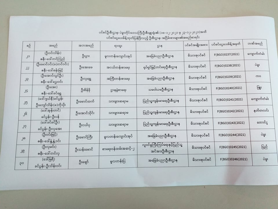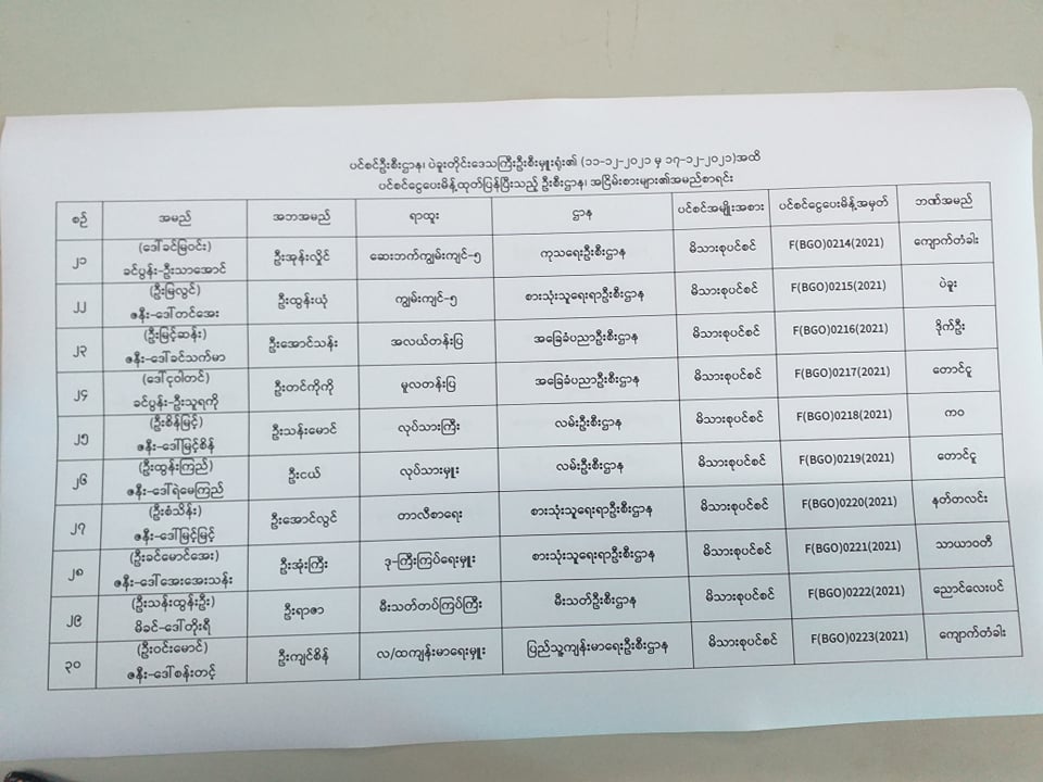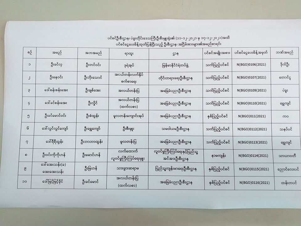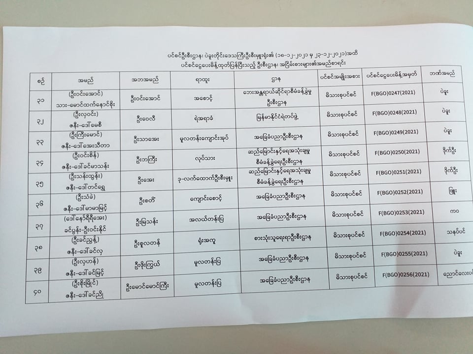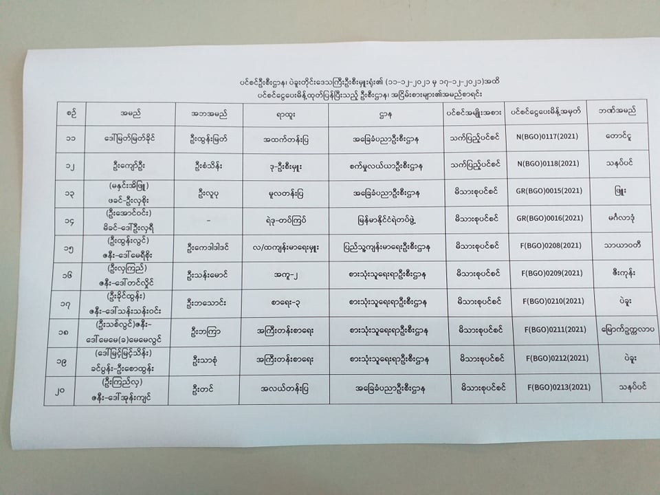 ပင်စင်ဦးစီးဌာန၊ ပဲခူးတိုင်းဒေသကြီး၏ ငွေပေးမိန့်ထုတ်ပြန်မှုစာရင်း (၁၁-၁၂-၂၀၂၁ မှ ၂၃-၁၂-၂၀၂၁)