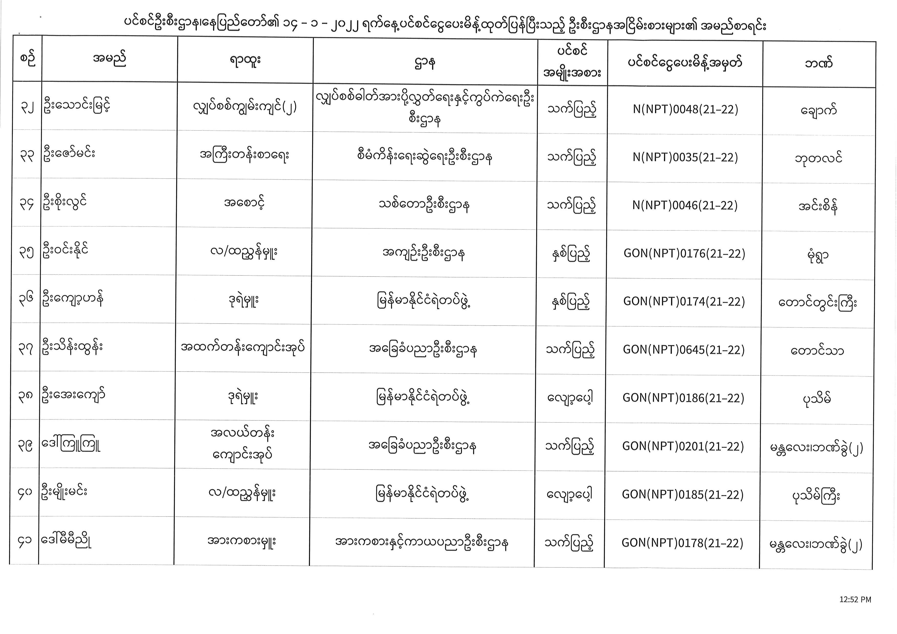 ပင်စင်ဦးစီးဌာန၊ နေပြည်တော်၏ ငွေပေးမိန့်ထုတ်ပြန်မှုစာရင်း (၁၄-၁-၂၀၂၁ နှင့် ၁၇-၁-၂၀၂၁) pdfinance_editor Wed, 01/19/2022 - 13:29