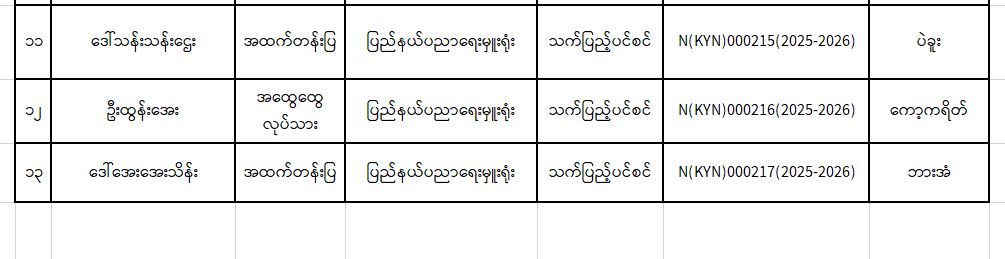 ပင်စင်ဦးစီးဌာန၊ ကရင်ပြည်နယ်ဦးစီးမှူးရုံး၏ ငွေပေးမိန့်ထုတ်ပြန်မှုစာရင်း (၁၅-၁-၂၀၂၂ မှ ၂၁-၁-၂၀၂၂)