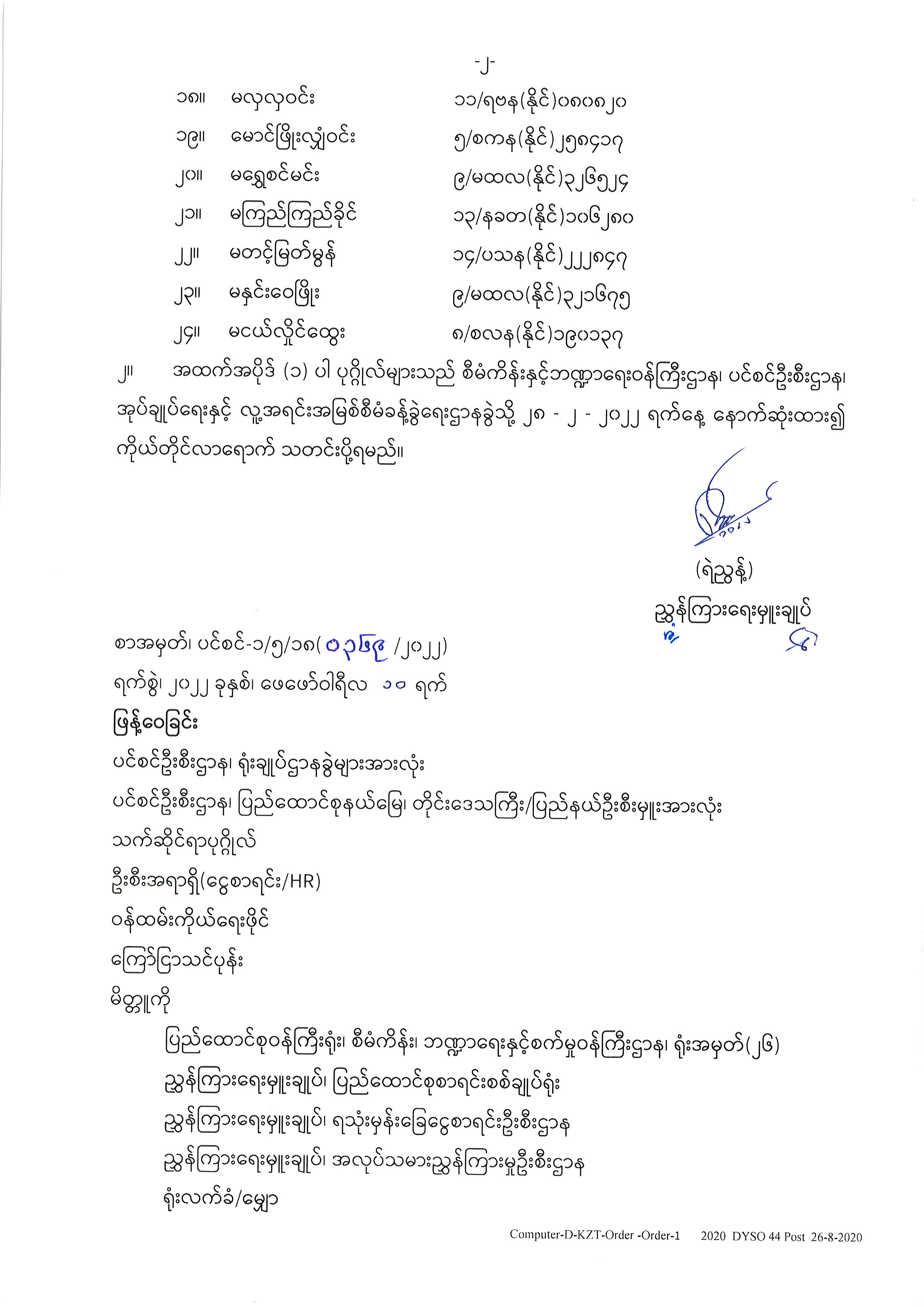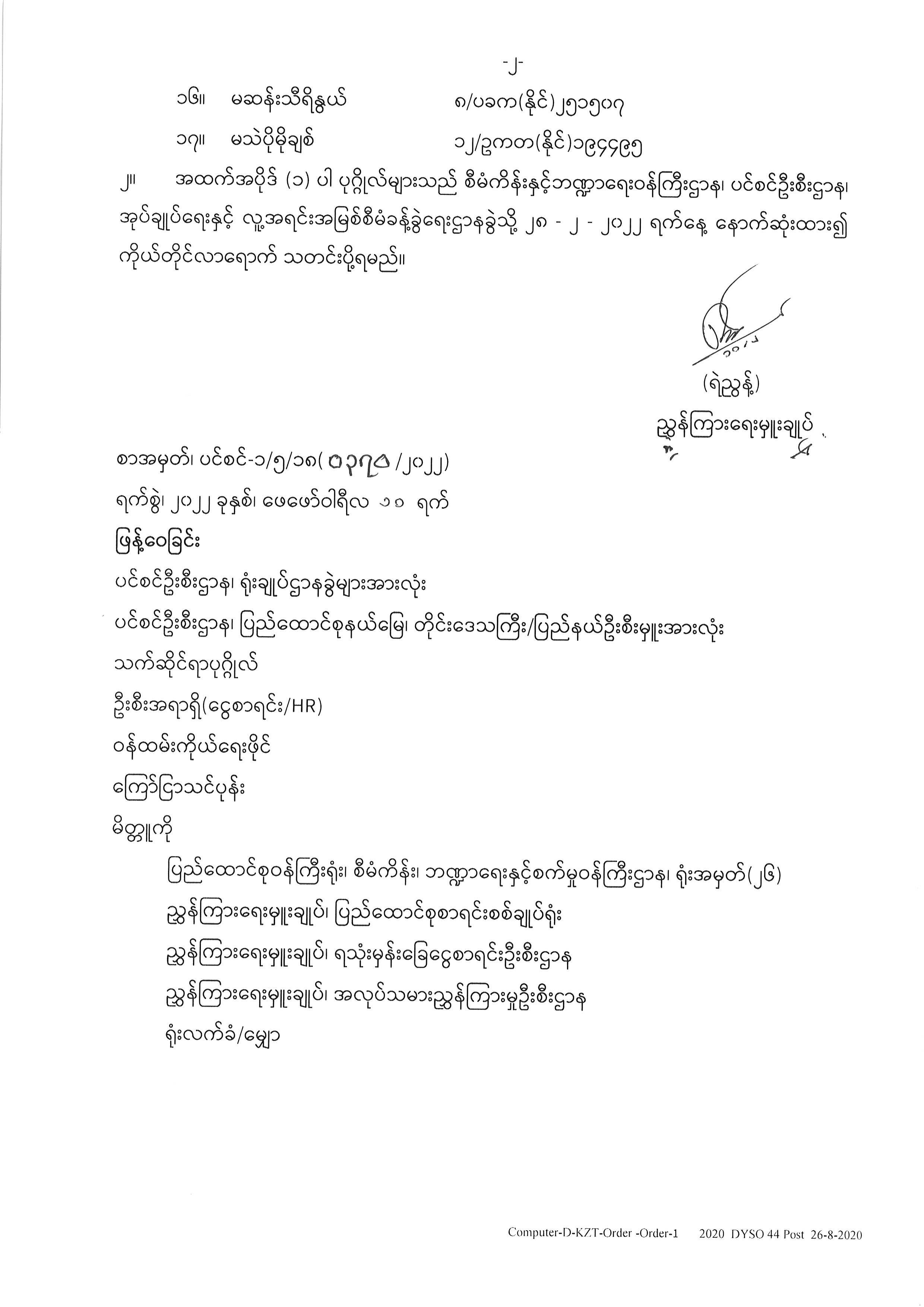 ပင်စင်ဦးစီးဌာနတွင် လစ်လပ်နေသော ဒုတိယဦးစီးမှူးနှင့် စိစစ်ရေးမှူး (၄) ရာထူးနေရာများအတွက် အောင်စာရင်းထုတ်ပြန်ကြေညာချက် pdfinance_editor Thu, 02/10/2022 - 11:21