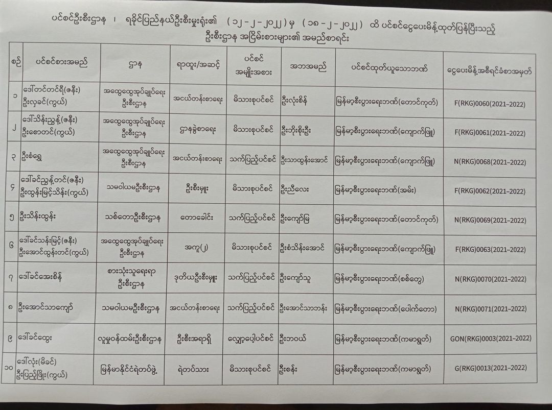 ပင်စင်ဦးစီးဌာန၊ ရခိုင်ပြည်နယ်ဦးစီးမှူးရုံး၏ ငွေပေးမိန့်ထုတ်ပြန်မှုစာရင်း (၁၂-၂-၂၀၂၂ မှ ၁၈-၂-၂၀၂၂)