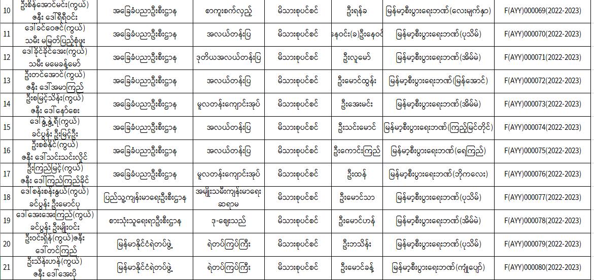 ပင်စင်ဦးစီးဌာန၊ ဧရာဝတီတိုင်းဒေသကြီးဦးစီးမှူးရုံး၏ ငွေပေးမိန့်ထုတ်ပြန်မှုစာရင်း pdfinance_editor Thu, 03/24/2022 - 13:38