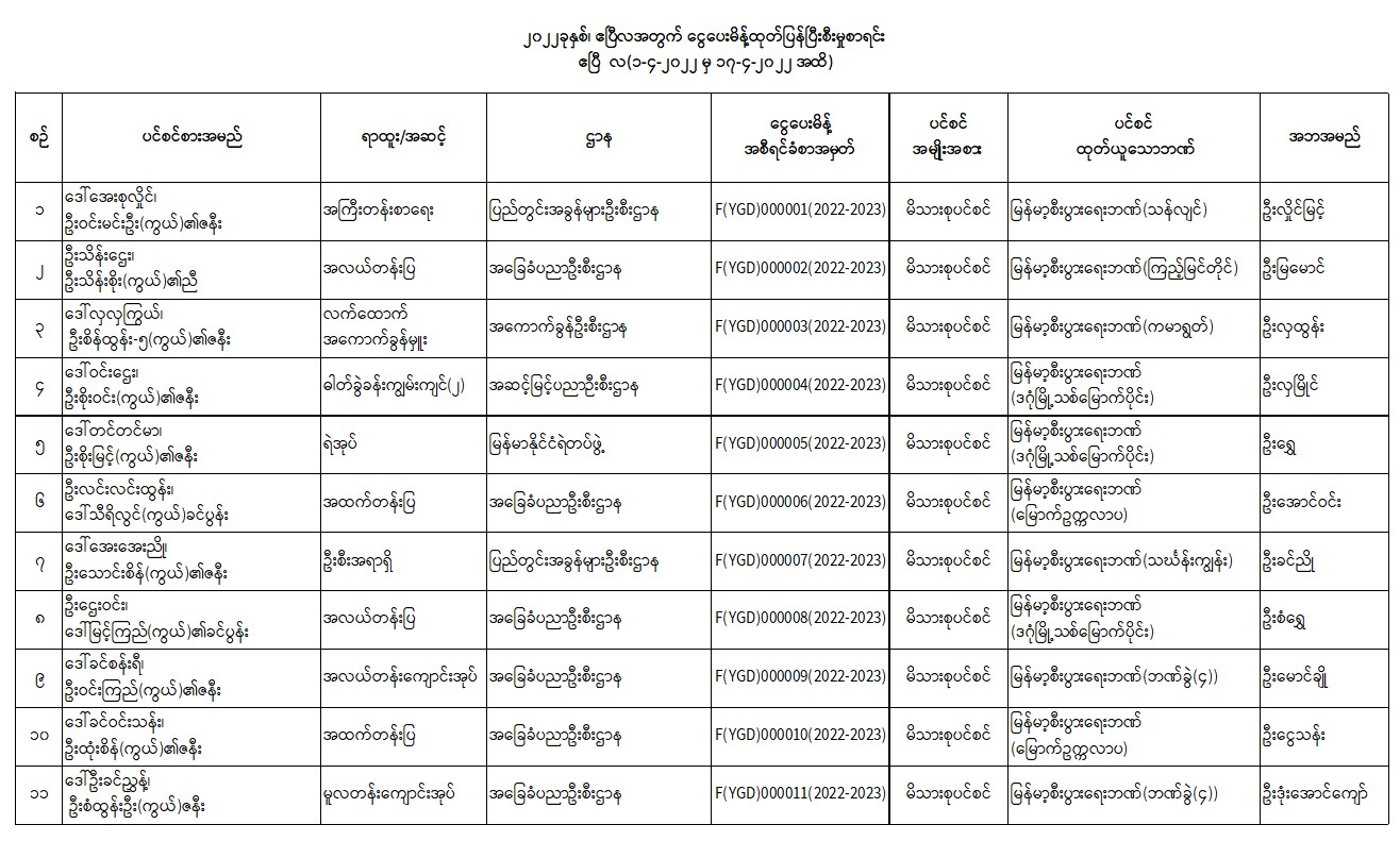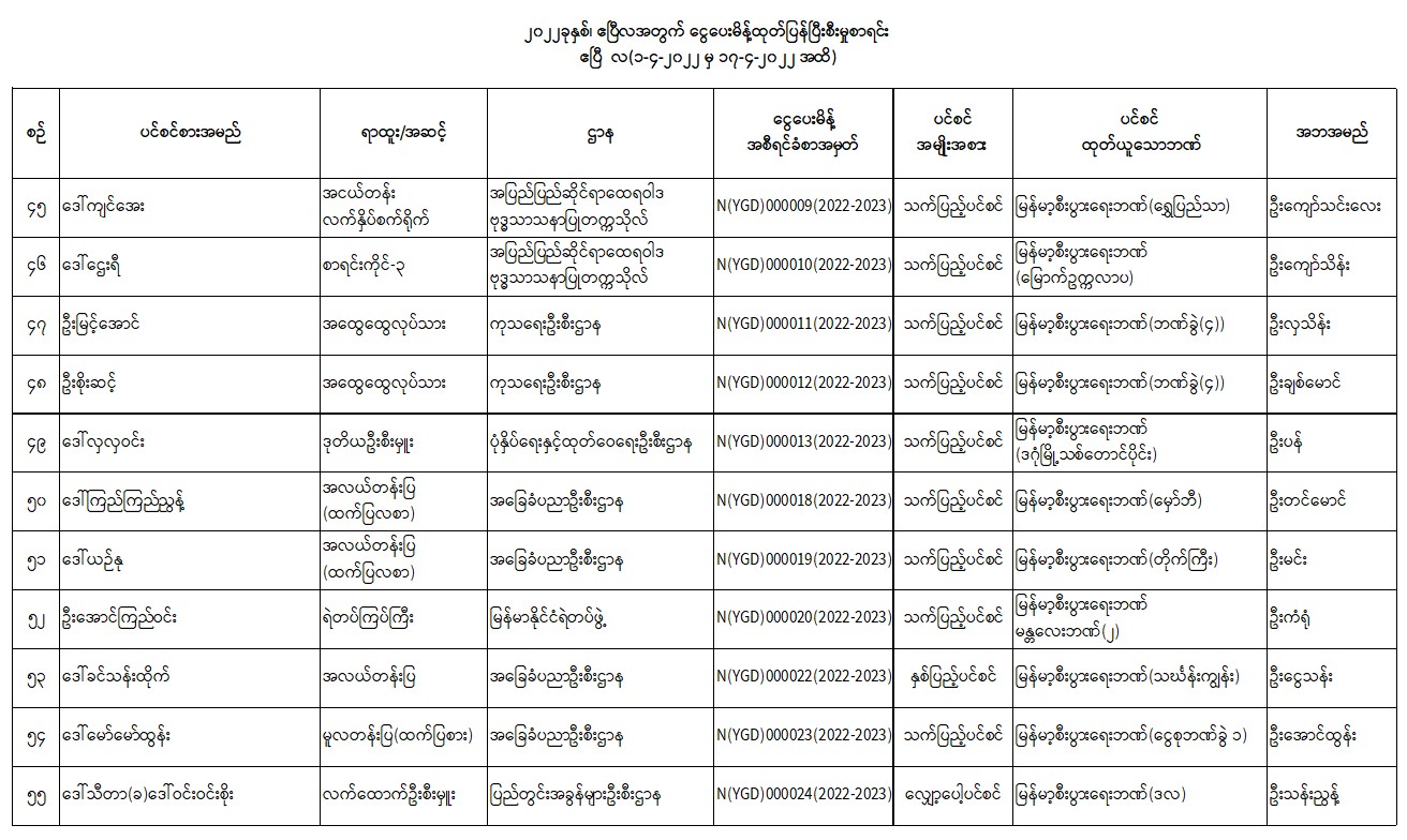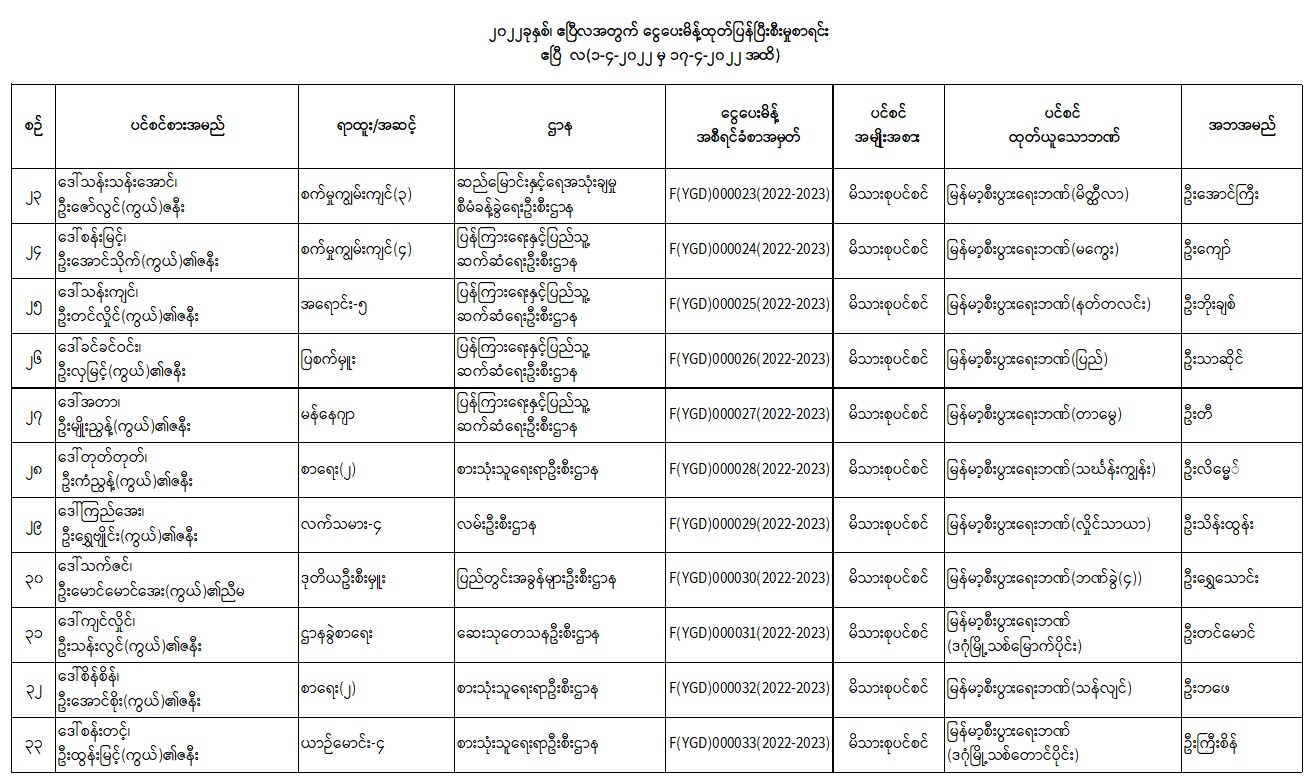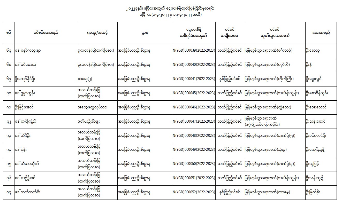 ပင်စင်ဦးစီးဌာန၊ ရန်ကုန်တိုင်းဒေသကြီးဦးစီးမှူးရုံး၏ ငွေပေးမိန့်ထုတ်ပြန်မှုစာရင်း (၁-၄-၂၀၂၂ မှ ၁၇-၄-၂၀၂၂)