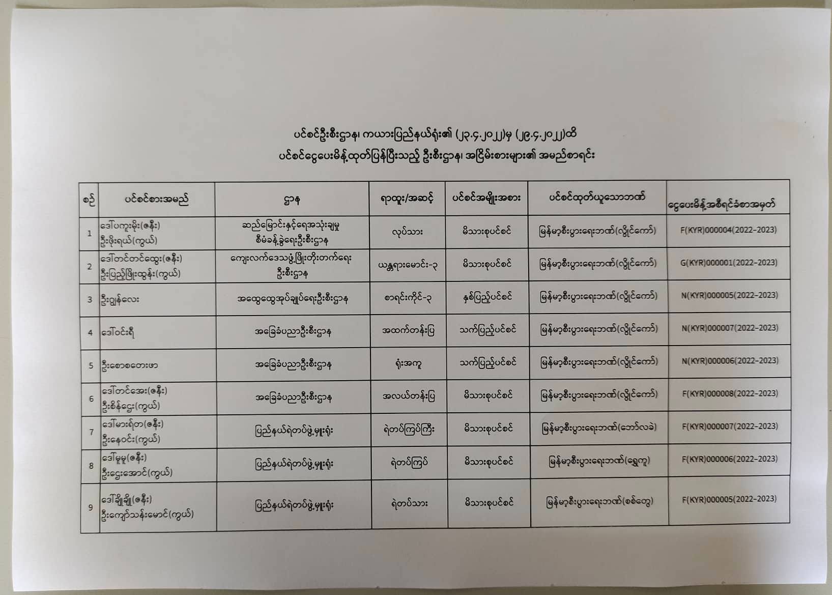 ပင်စင်ဦးစီးဌာန၊ ကယားပြည်နယ်ဦးစီးမှူးရုံး၏ ငွေပေးမိန့်ထုတ်ပြန်မှုစာရင်း (၂၃-၄-၂၀၂၂ မှ ၂၉-၄-၂၀၂၂)