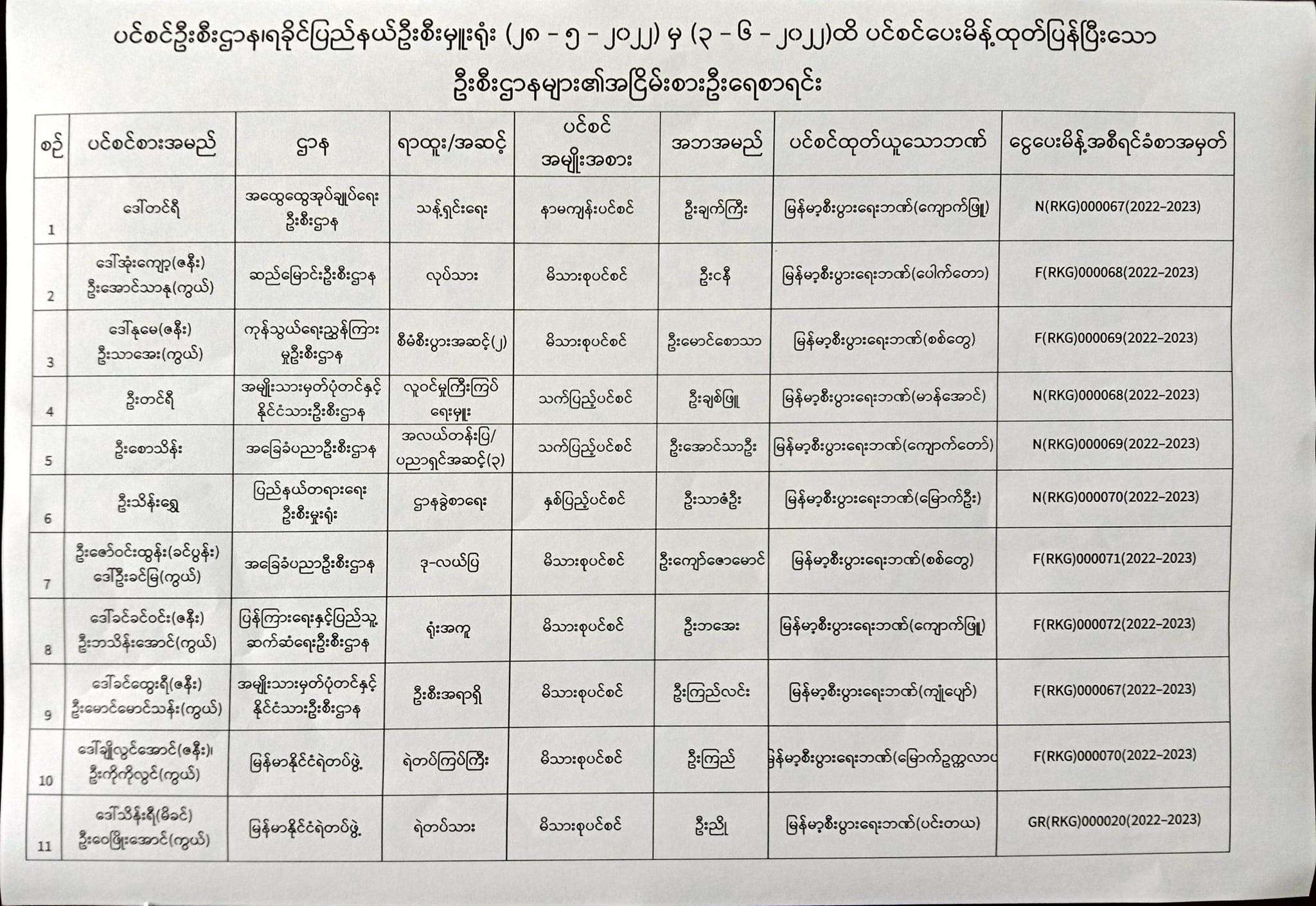 ပင်စင်ဦးစီးဌာန၊ ရခိုင်ပြည်နယ်ဦးစီးမှူးရုံး၏ ငွေပေးမိန့်ထုတ်ပြန်မှုစာရင်း (၂၈-၅-၂၀၂၂ မှ ၃-၆-၂၀၂၂) pdfinance_editor Fri, 06/03/2022 - 09:49