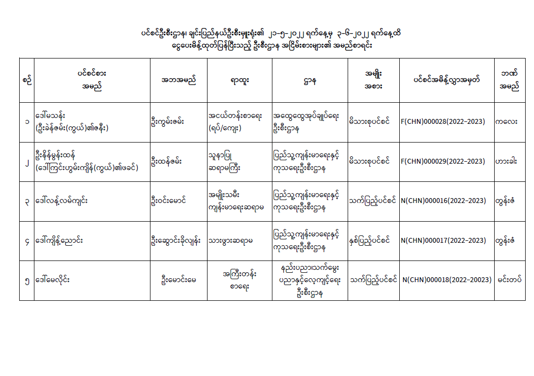 ပင်စင်ဦးစီးဌာန၊ ချင်းပြည်နယ်၏ ငွေပေးမိန့်ထုတ်ပြန်မှုစာရင်း (၂၁-၅-၂၀၂၂ မှ ၃-၆-၂၀၂၂) pdfinance_editor Sat, 06/04/2022 - 10:09