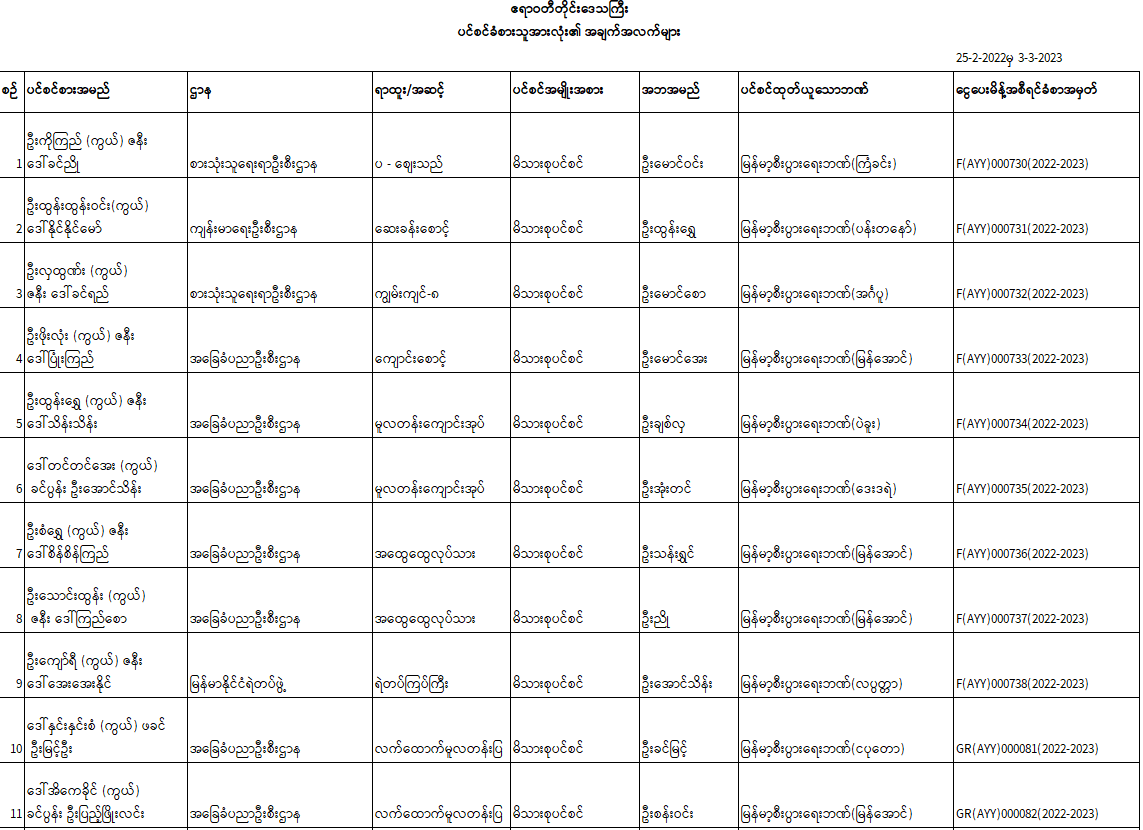 ပင်စင်ဦးစီးဌာန၊ဧရာဝတီတိုင်းဒေသကြီး၏ငွေပေးမိန့်ထုတ်ပြန်မှုစာရင်း(၂၅-၆-၂၀၂၂ မှ ၁-၇-၂၀၂၂) pdfinance_editor Mon, 07/04/2022 - 09:48