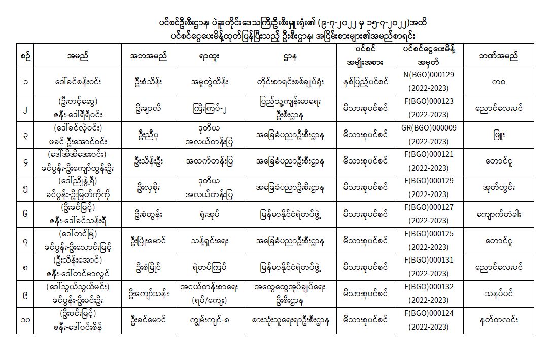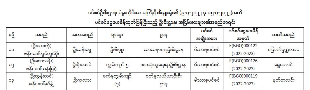 ပင်စင်ဦးစီးဌာန၊ ပဲခူးတိုင်းဒေသကြီးဦးစီးမှူးရုံး၏ ငွေပေးမိန့်ထုတ်ပြန်မှုစာရင်း (၉-၇-၂၀၂၂ မှ ၁၅-၇-၂၀၂၂) pdfinance_editor Fri, 07/29/2022 - 13:14