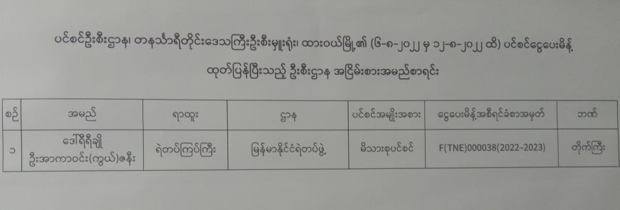 ပင်စင်ဦးစီးဌာန၊တနင်္သာရီတိုင်းဒေသကြီး၏ငွေပေးမိန့်ထုတ်ပြန်မှုစာရင်း(၆.၈.၂၀၂၂ မှ ၁၂.၈.၂၀၂၂) pdfinance_editor Thu, 08/11/2022 - 15:05